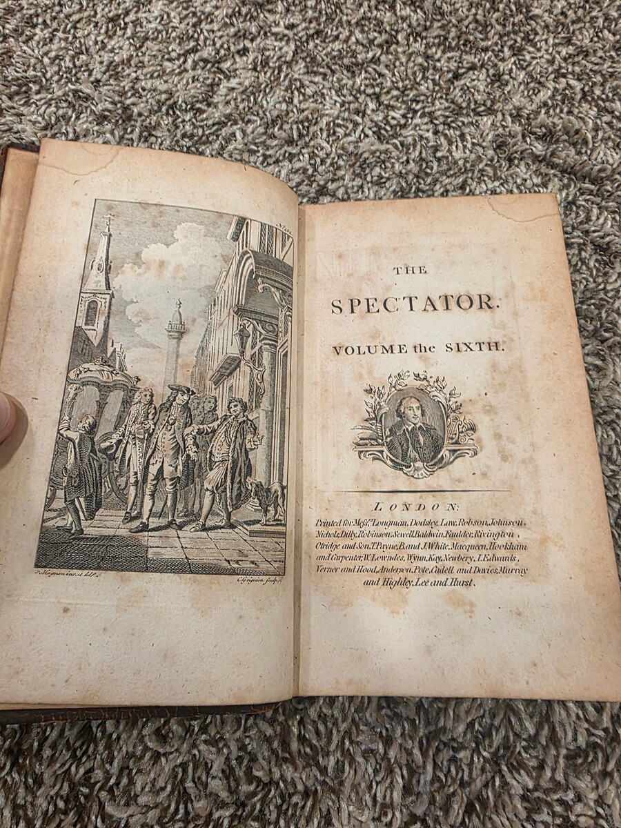 Add a genuine piece of early literary history to your collection with this antique leather-bound volume of The Spectator, Volume the Sixth.