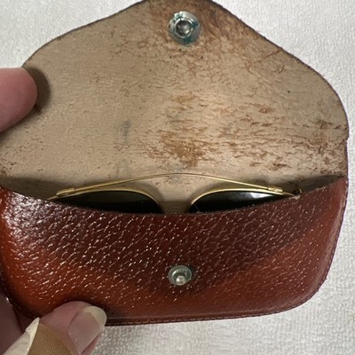 Vintage Willson Gold Rim Filt Ray Over Specs Clip On Sunglass Leather Case