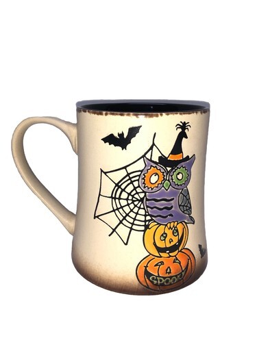 Spectrum Designz Halloween Owl Bats Spider Web Pumpkins Pottery Mug Cup 4.5”