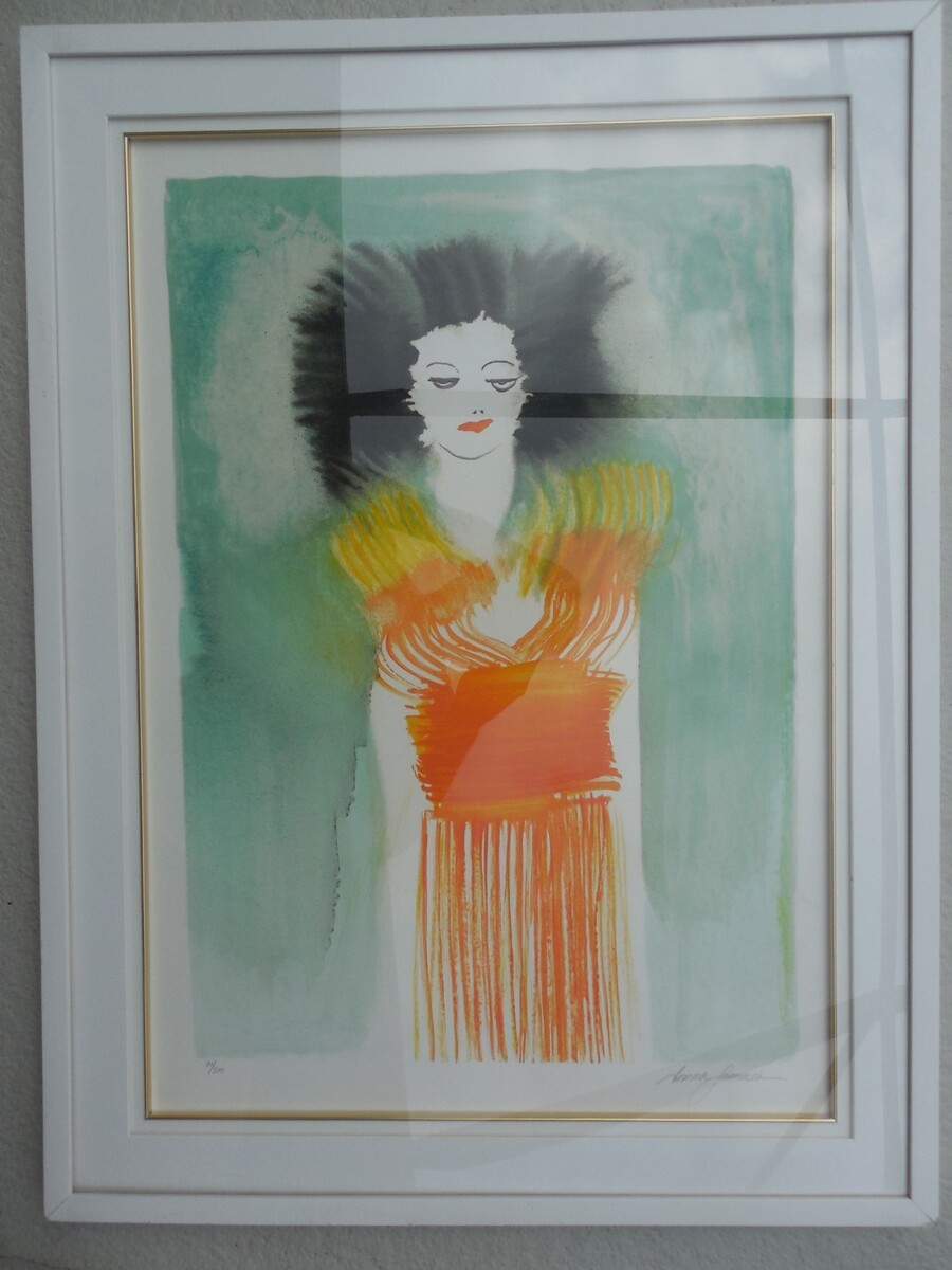 This print is a hand-signed and numbered lithograph of Donna Summer's artwork titled "Madame D (Diana Ross)" created in 1989. The piece features an abstract portrait of Diana Ross, showcasing Summer's postmodern and contemporary art style. The lithograph is framed and matted, making it a limited edition collectible for fans of music and American culture. This unique piece was created in the United States and is a must-have for collectors of contemporary art. I will pay for the packing, shipping and insurance. Thank you very much!