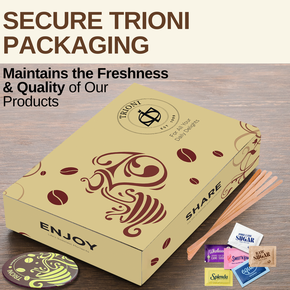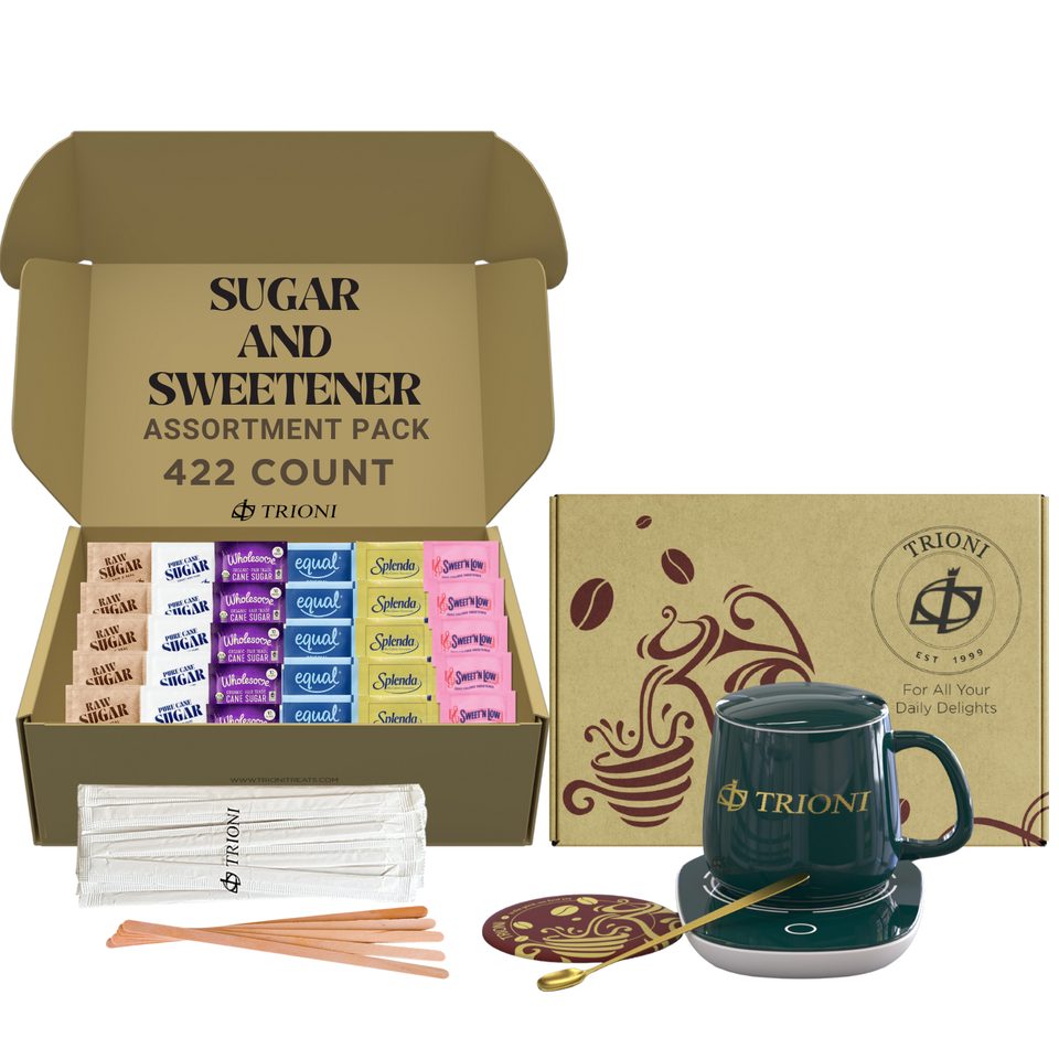 Sugar and Sweetener Assortment Packets with TRIONI Stirrers & Coasters - 422 ct