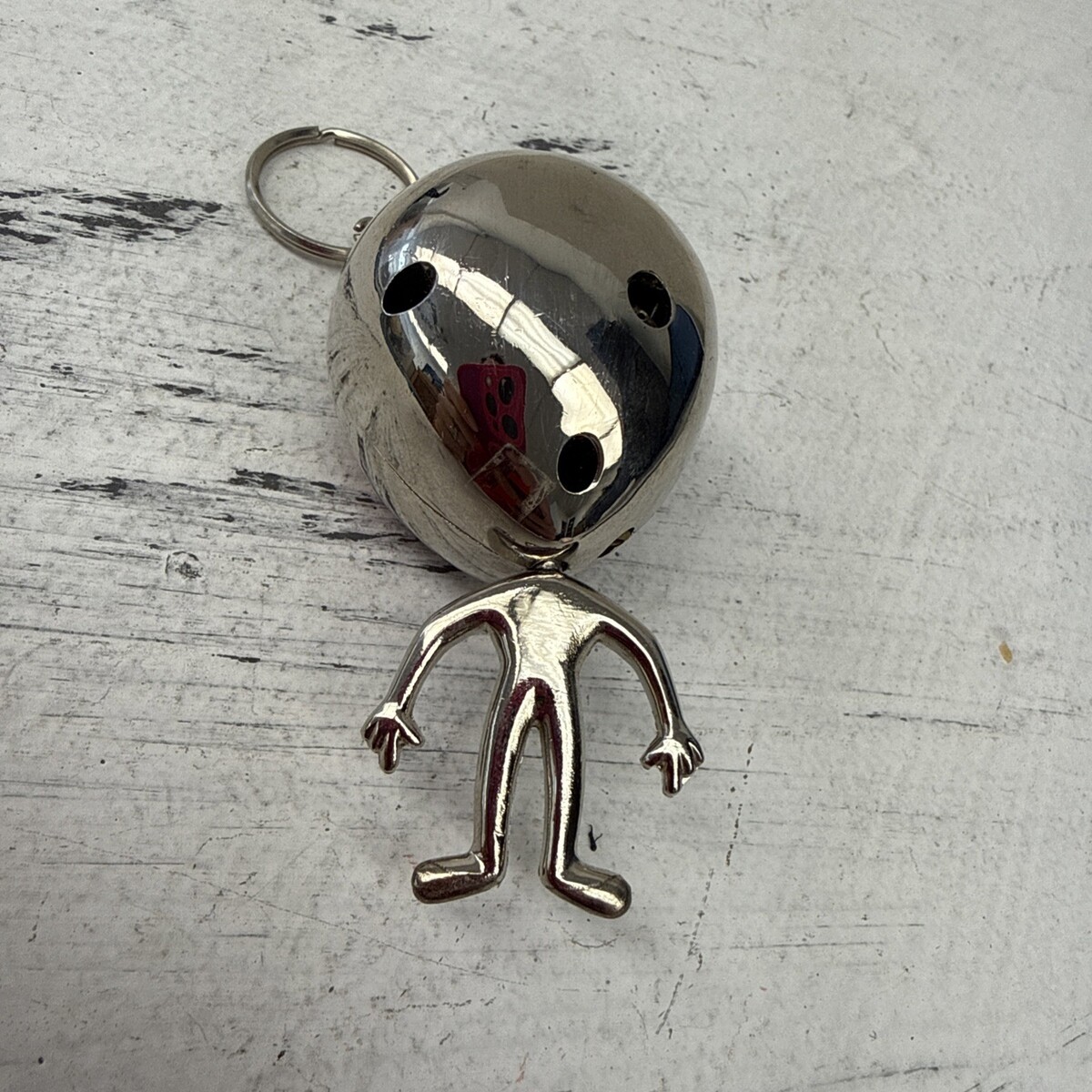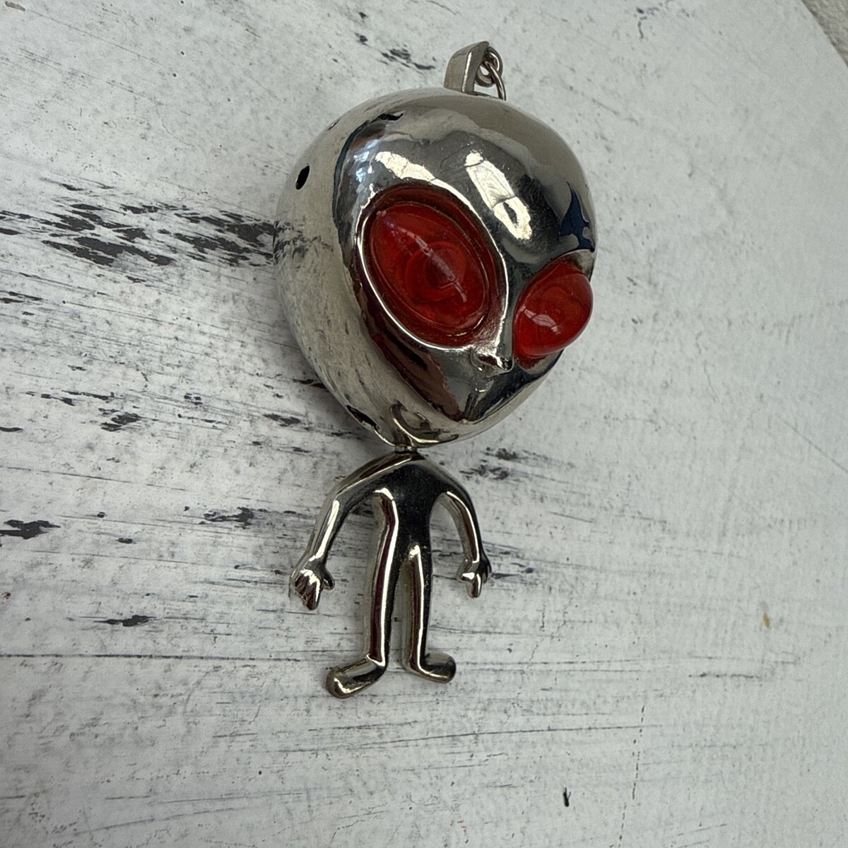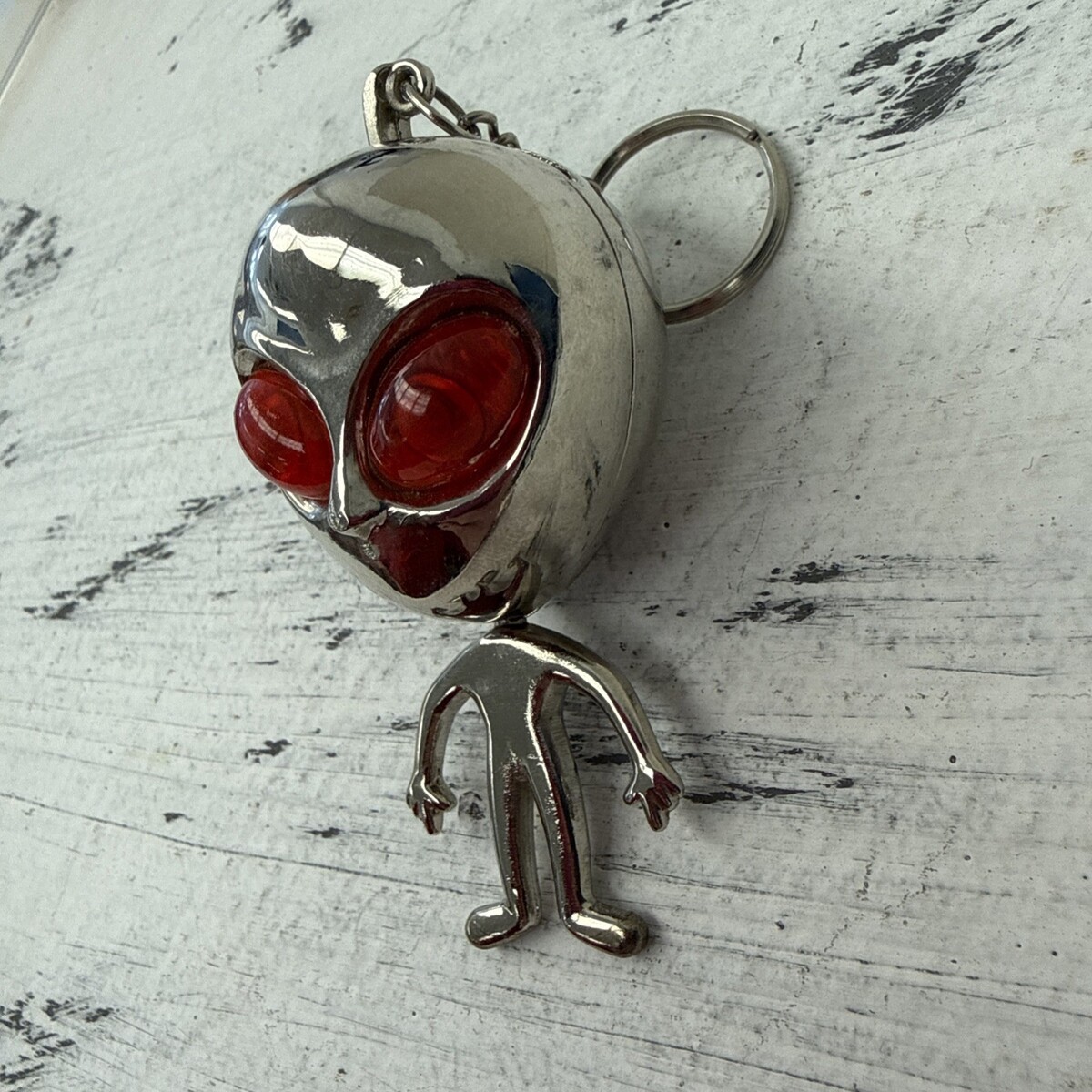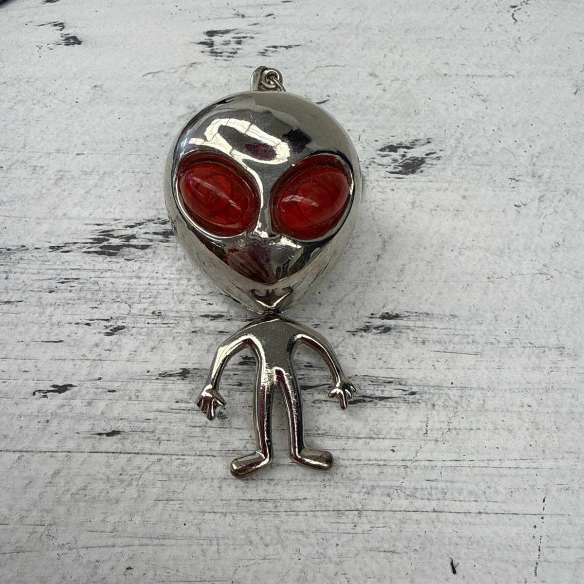 Vtg Heavy Chrome Metal Red Eyed Alien/Extraterrestrial Butane Lighter keychain