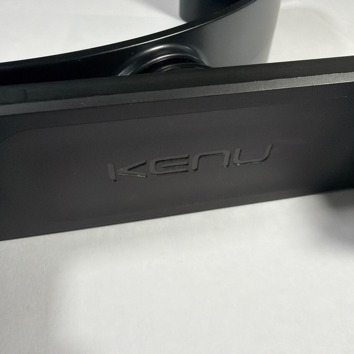 Kenu Airvue headrest tablet mount in black for use with most 7" to 13" tablets on headrests with two vertical posts. Item shows minor cosmetic wear from normal use (light scuffs may be present). Includes the mount only, as pictured.