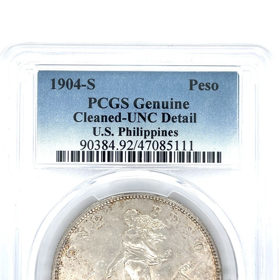 1904-S U.S. Philippines Silver Peso PCGS Genuine Cleaned UNC Detail Coin