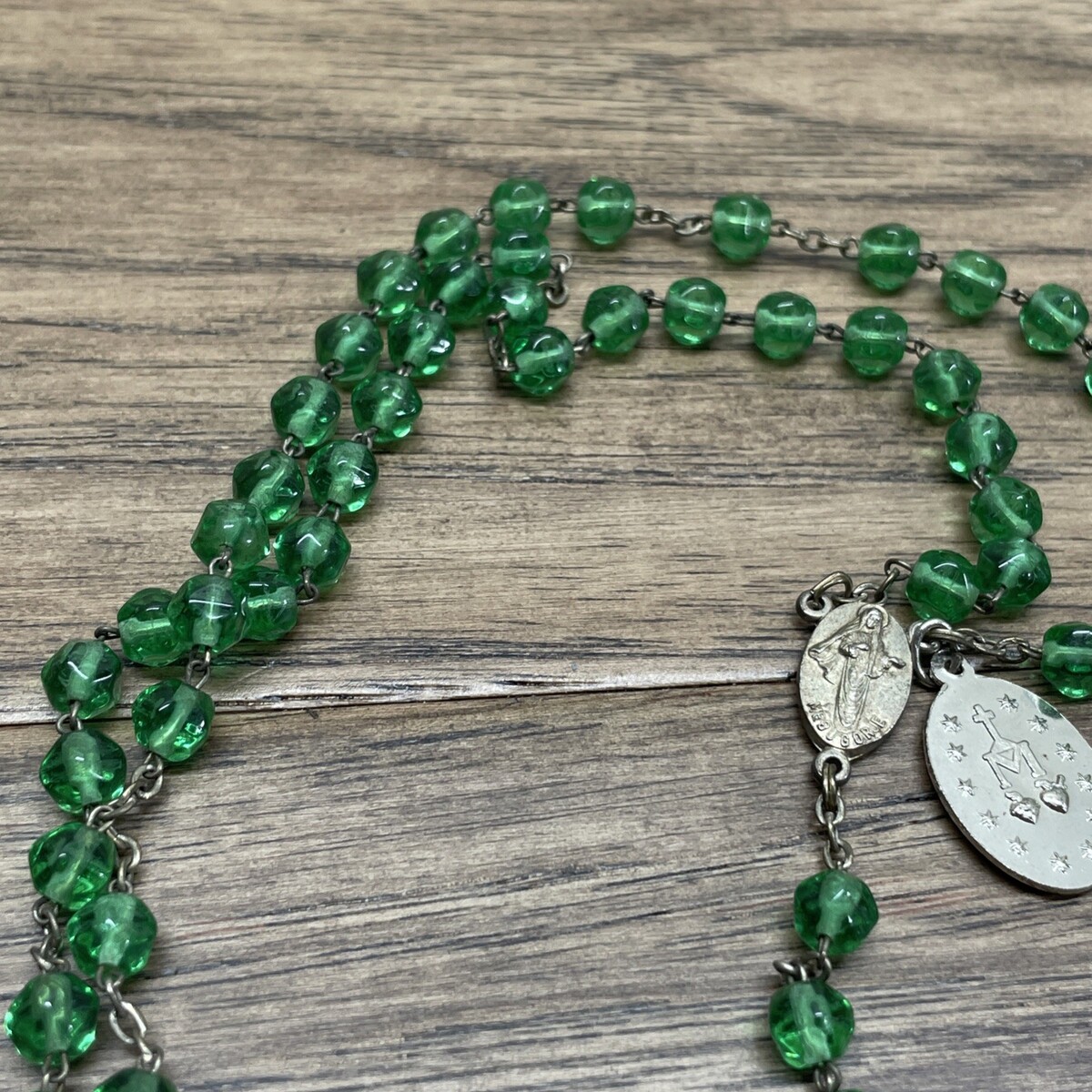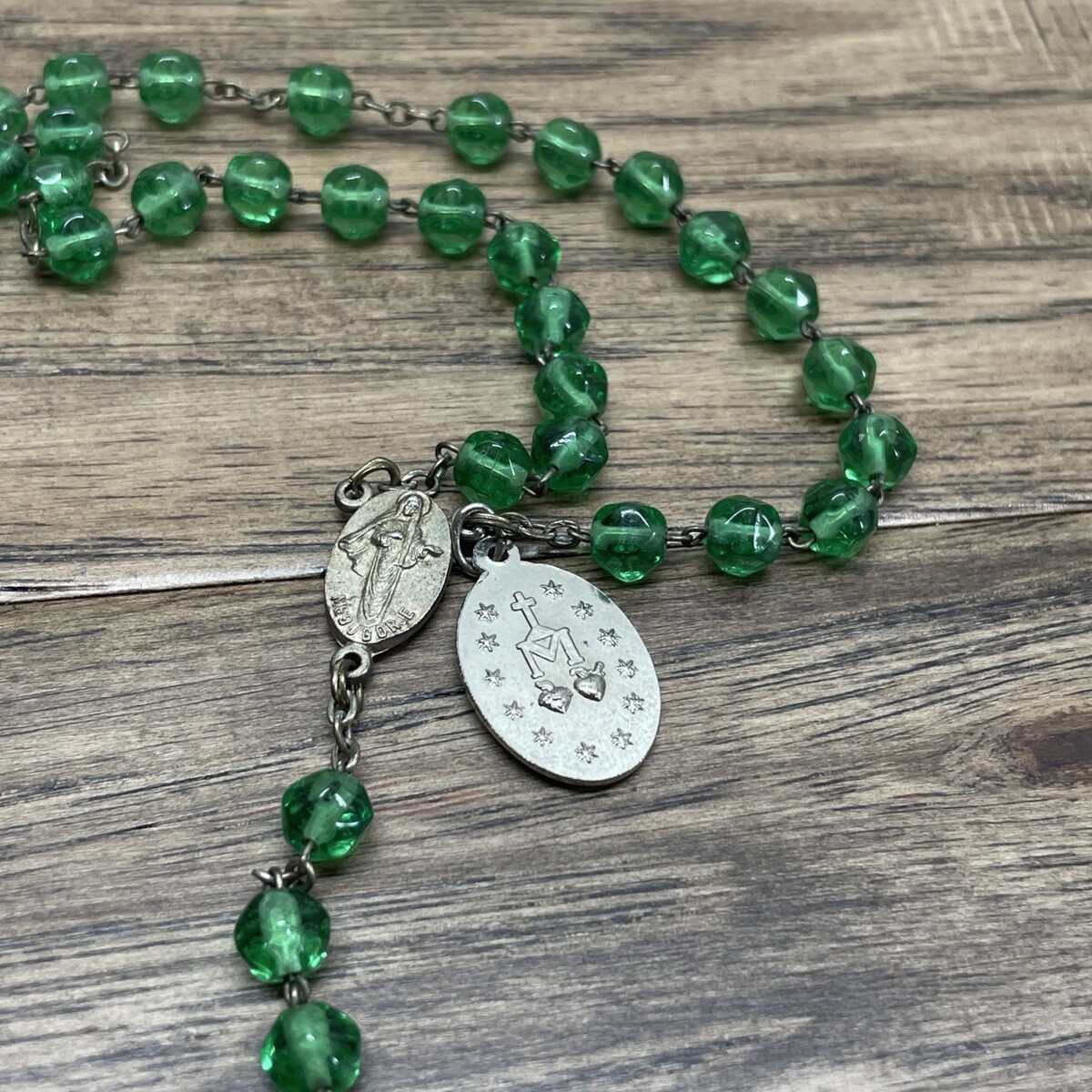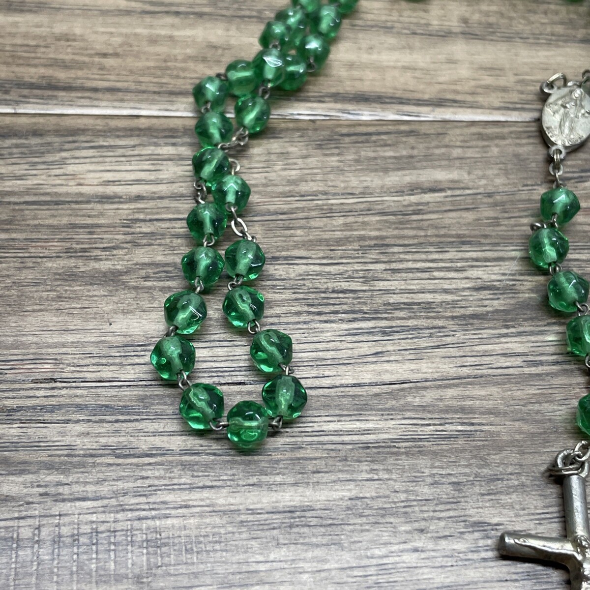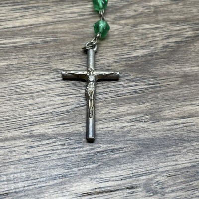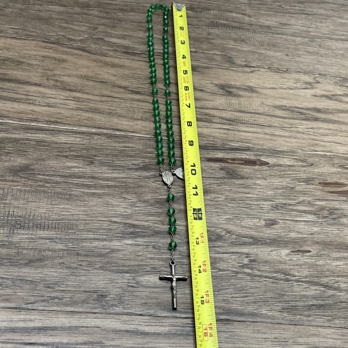 Vintage Green Beaded Rosary Catholicism Christianity Crucifix KG JD