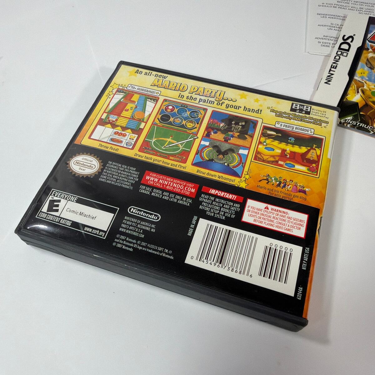 Pre-owned original Nintendo DS case for Mario Party DS with the instruction booklet and health safety booklet. Game cartridge is not included (case/manuals only). Case and inserts may show light handling wear such as minor scuffs, edge wear, or small creases.