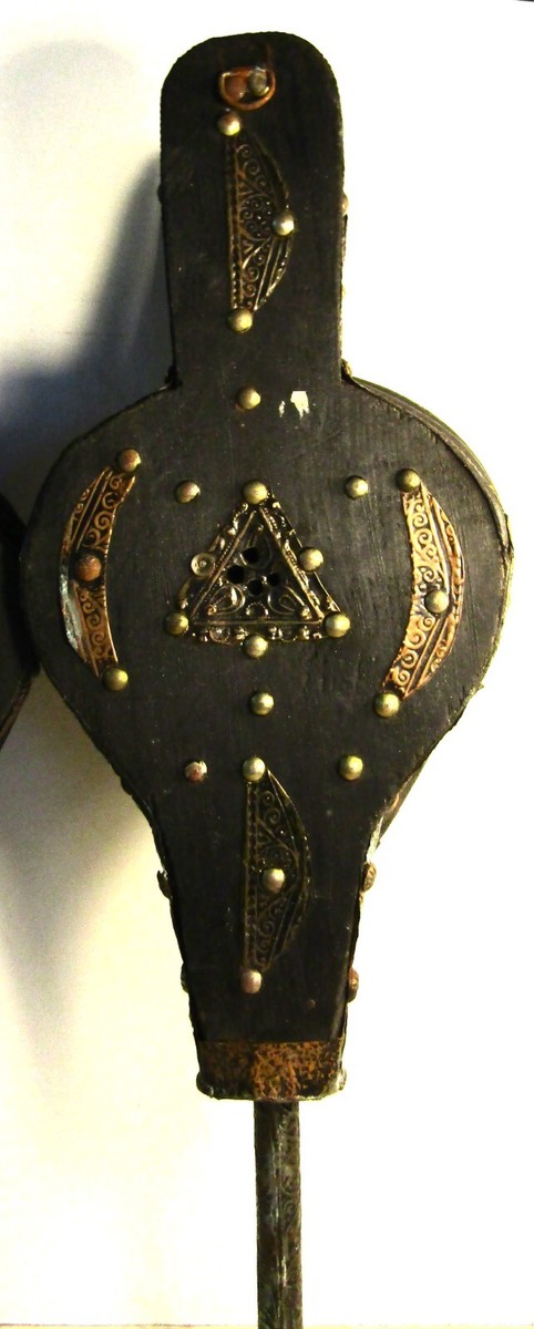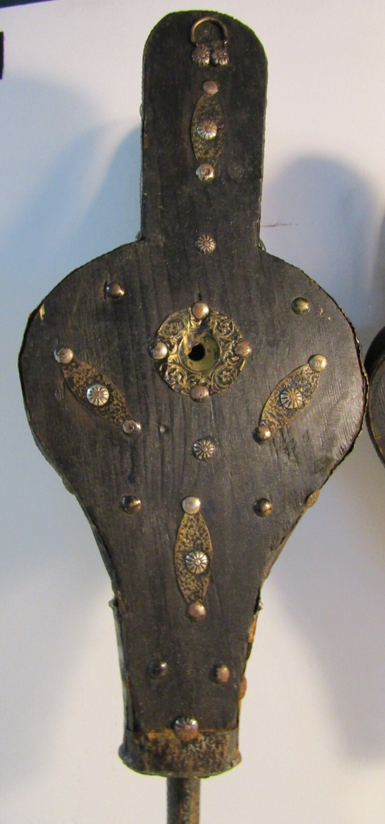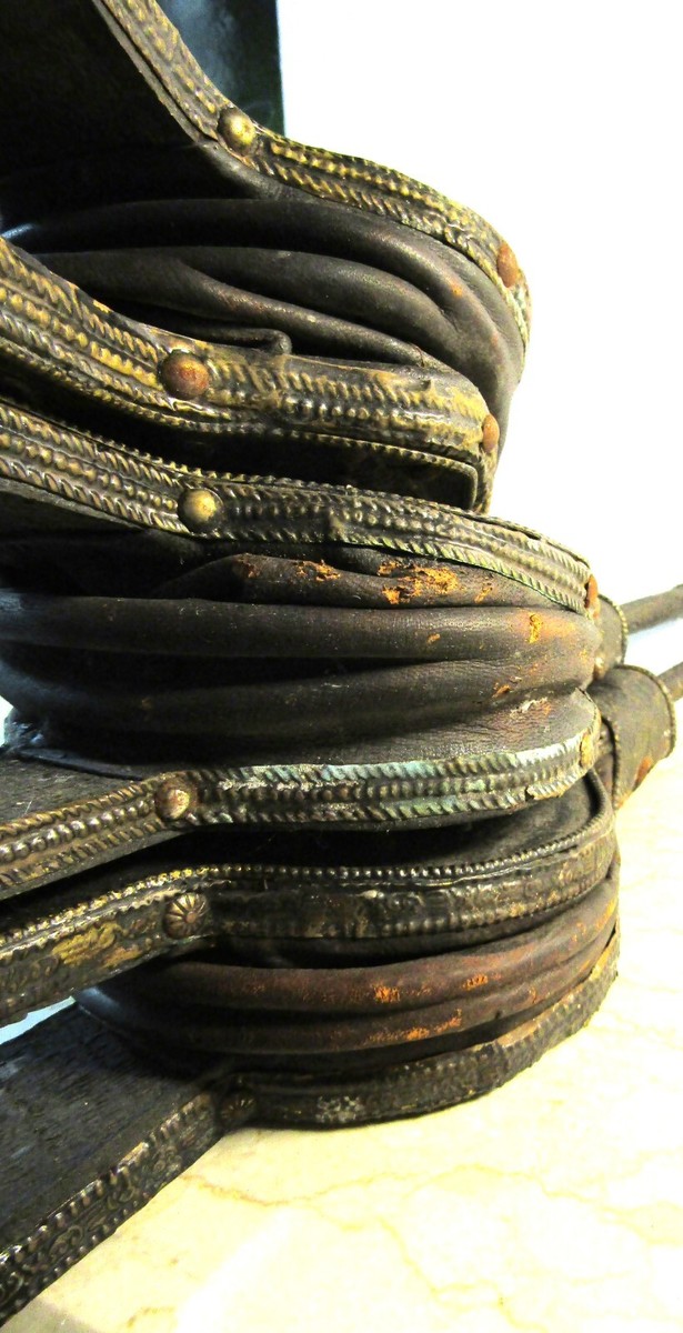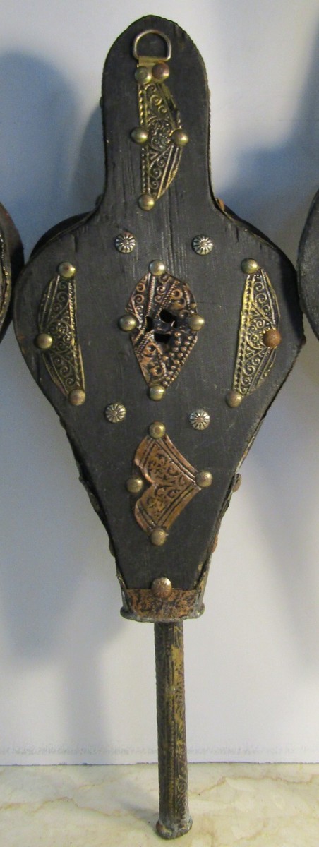 Set of Three Antique Moroccan Bellows Wall Decor Wood Leather Silver