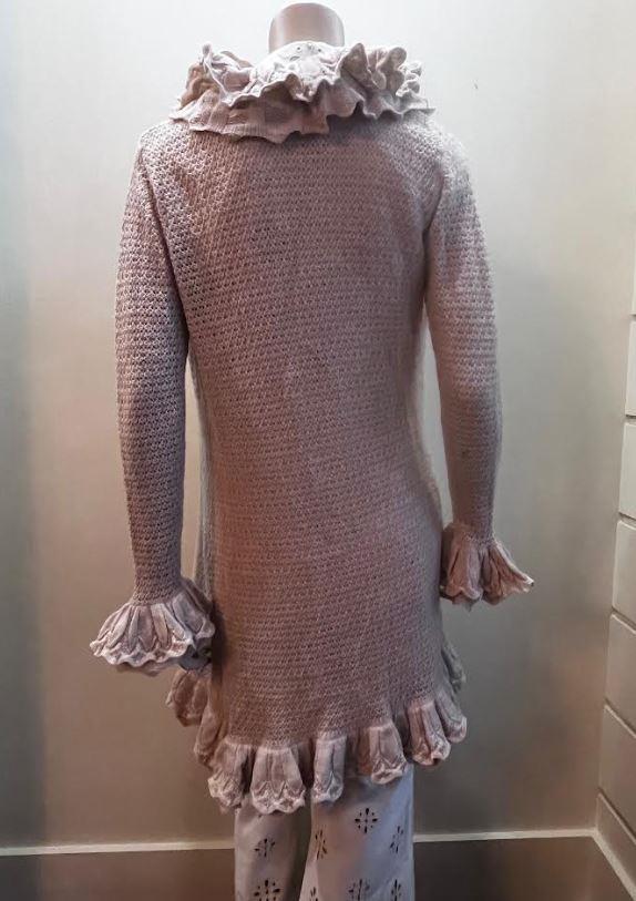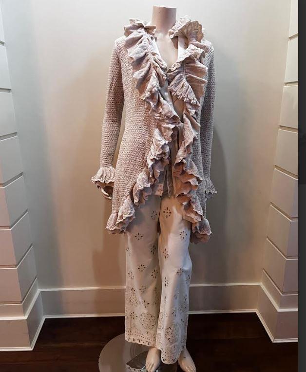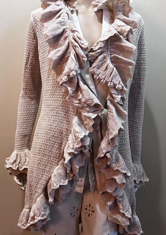 Yara reimagines the cardigan as boho couture with an oversized ruffle trim. Knit in a delicate pointelle stitching, it is slim through the body but rich in detail, layering seamlessly over denim or dresses. Cozy but special, itAs the kind of knit that transforms the everyday into something a little more extraordinary.
