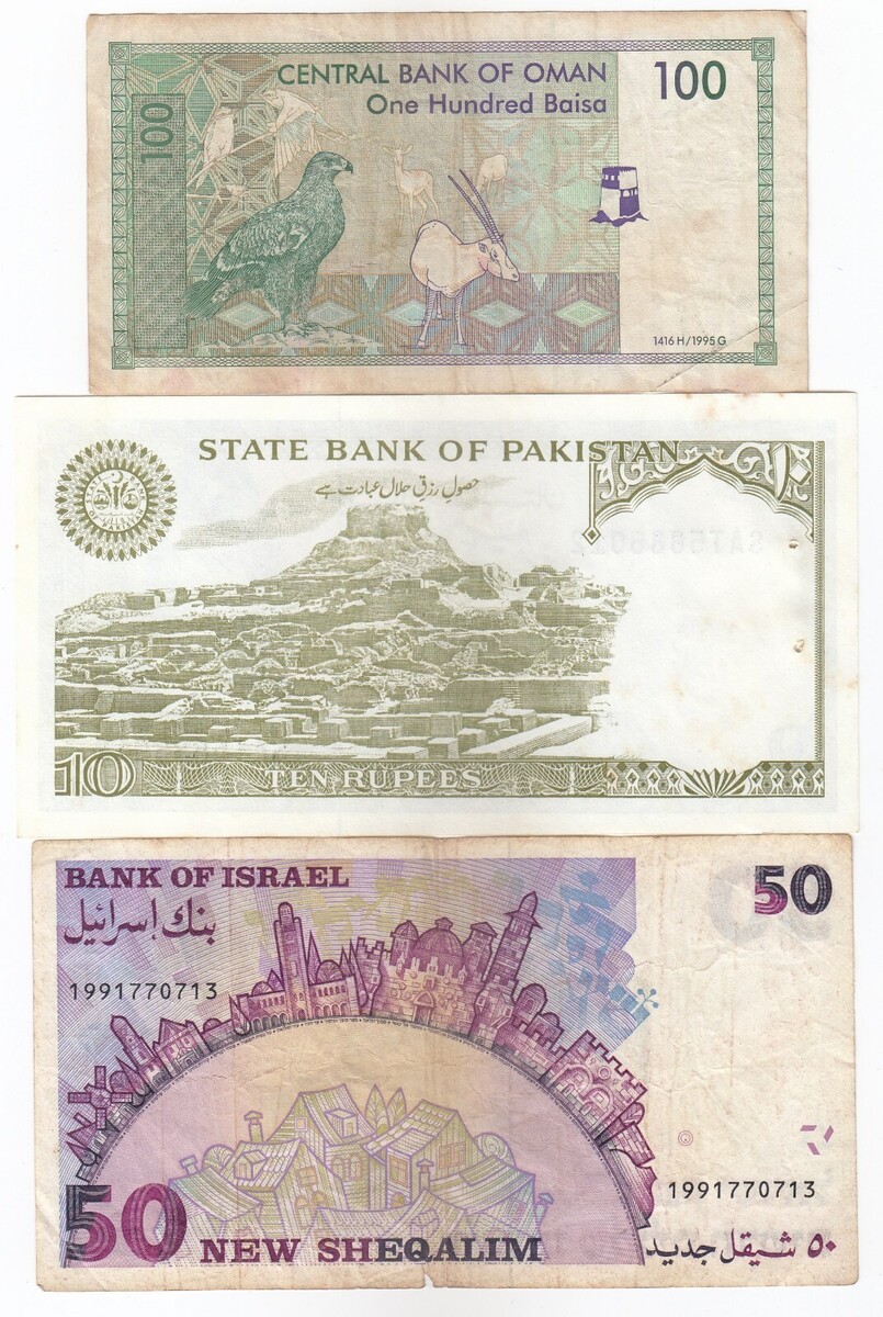 Israele, Oman, Pakistan, Lotto Di 3 Banconote