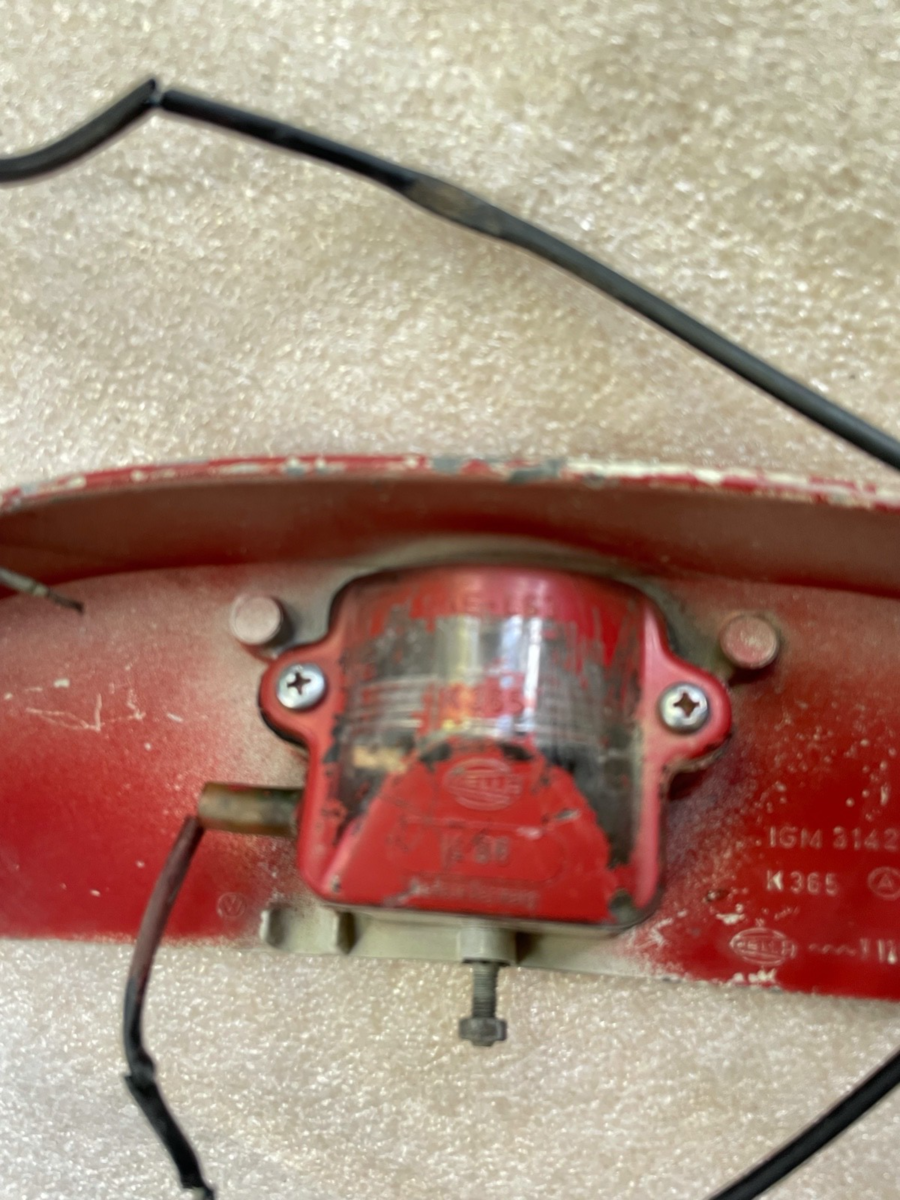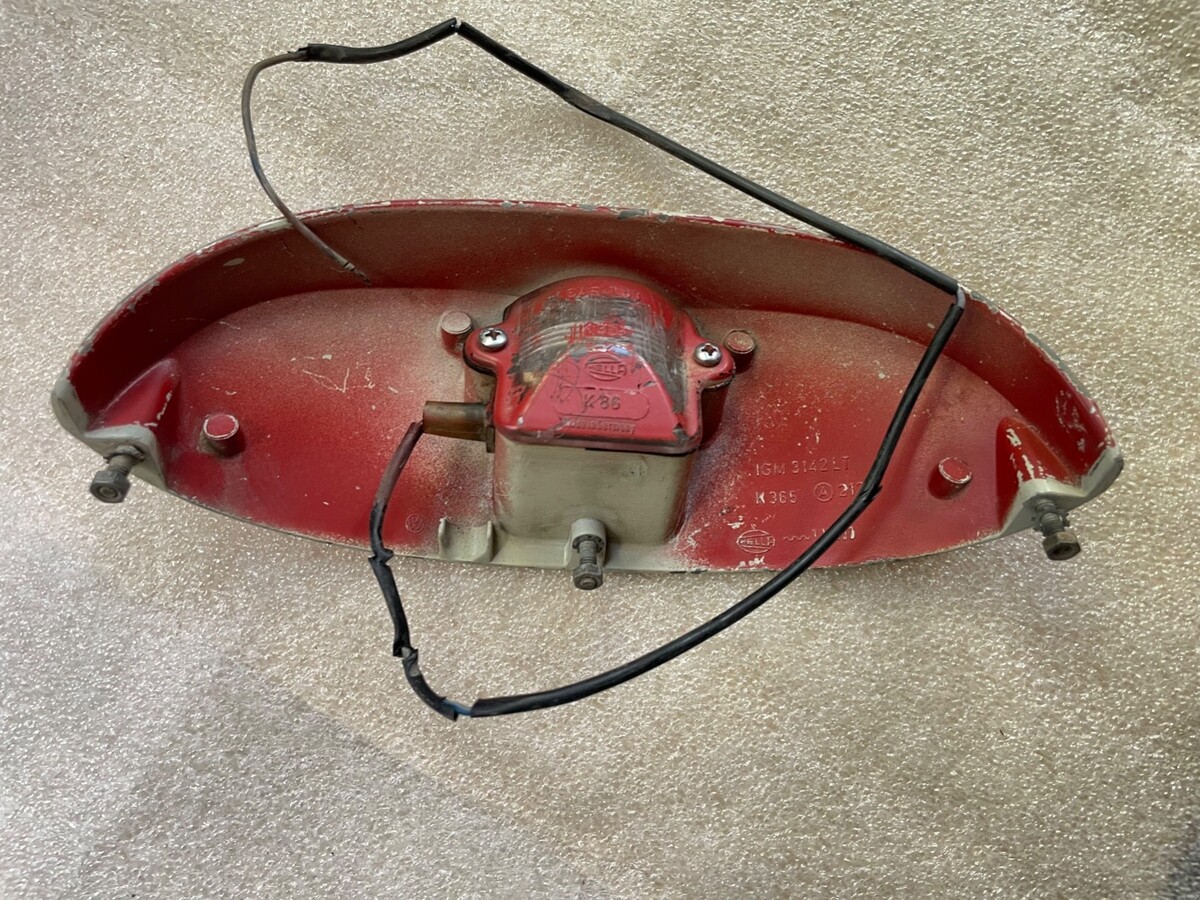 Original 1964, 1965, 1966 VW Beetle rear License Plate Housing Light Cover. All 3 mounting screws/nuts are in place (see 4th pic). Used condition. Made in Germany. Red, but sand and re-paint any color.