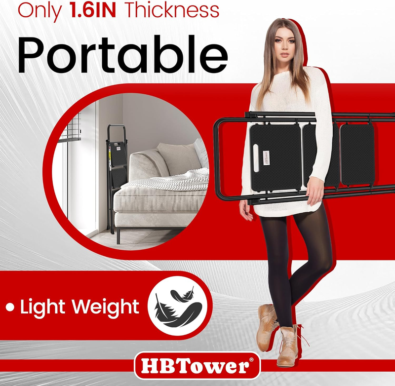 UPGRADE STEP LADDER: Open: 20.1" x 26.8" x 40.9", Folded: 44.5" X 20.1" X 1.6", Net Weight: 11.5 pounds. HBTower Safety Folding 3 Step Steel Ladder is made for you!