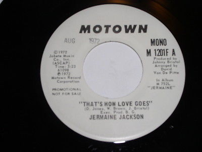 This is a vintage promotional 45 rpm phonograph record by Jermaine Jackson. Title: "That's How Love Goes". This is the mono/stereo issue. Record label: Motown M 1201F.