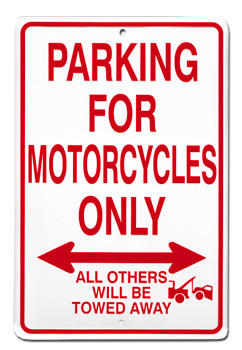Motorcycles Only- All Others will be Towed These parking signs are a great item to hang on the wall of your room, office or garage! Our metal parking signs are 8"x12".