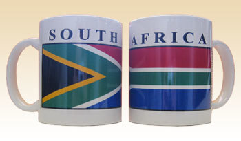 Our colorful 12 oz. ceramic South Africa mug is perfect for your early morning beverage. The mug includes a unique wrap-around flag design that's visible from all sides. Microwave safe.Mugs are sold individually. They are pictured in pairs only to show the full design.