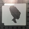 The stencil displayed is our 4 inch size. This stencil is about 5 1/2 inches x 5 inches. The design is 4 inches x 2 1/2 inches. All other sizes are directly proportionate to this size.