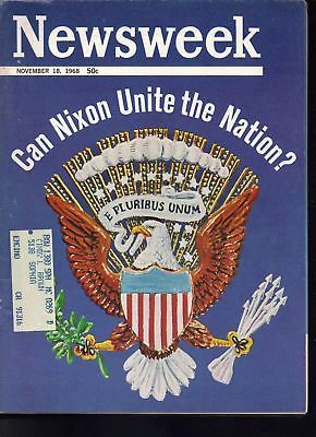 You are bidding on a complete Newsweek Magazine Can Nixon Unite the Nation? November 18, 1968