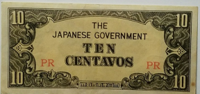 This is an original legal tender issued by The Japanese Government for the amount of Ten Centavos. Block letters PR for use in Philippines.