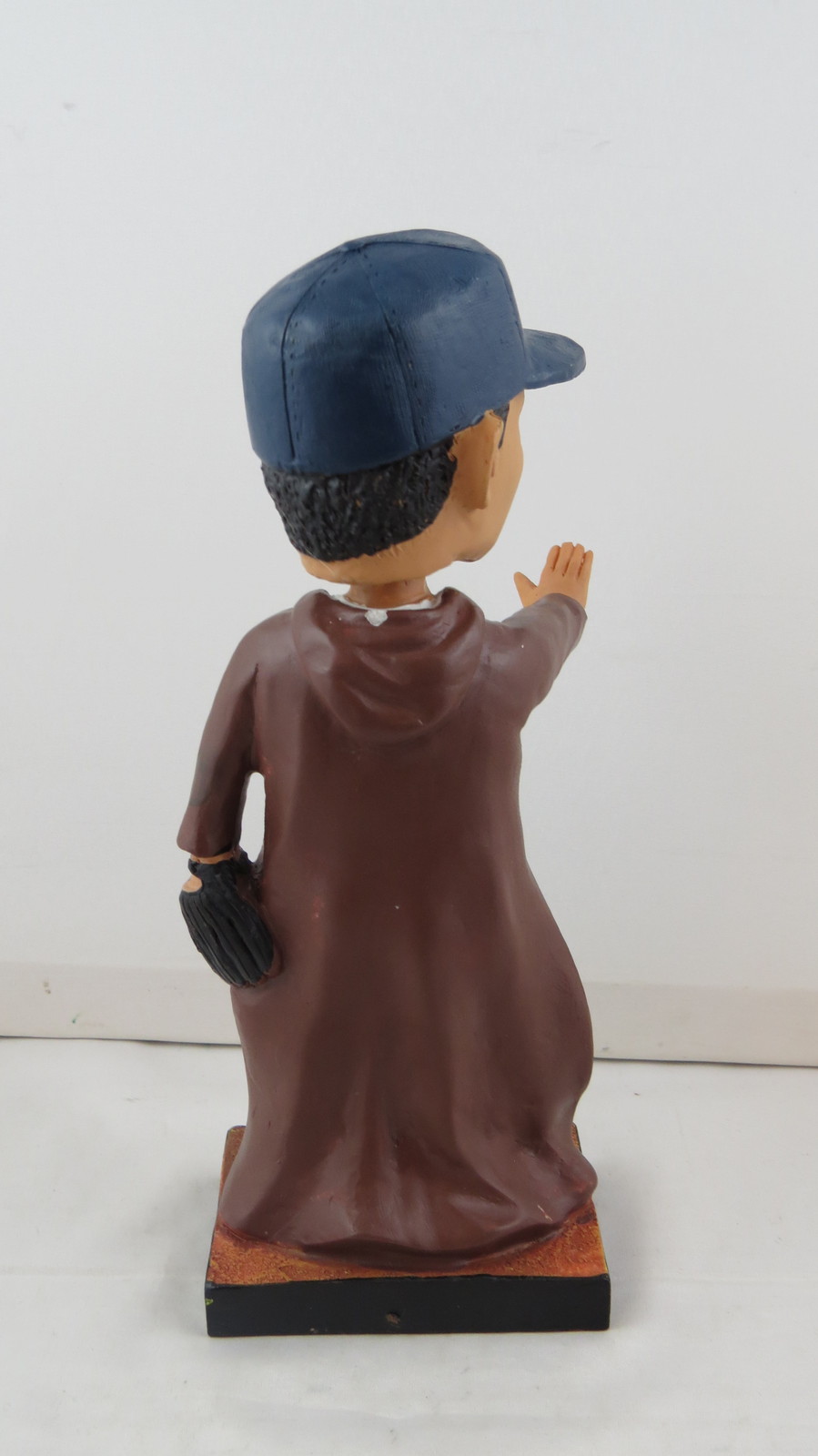 This bobblehead is in very good condition. There is one very minor chip in the back of the bobblehead. I have pictured it for your reference. Beyond this there is no other damage to the bobblehead.