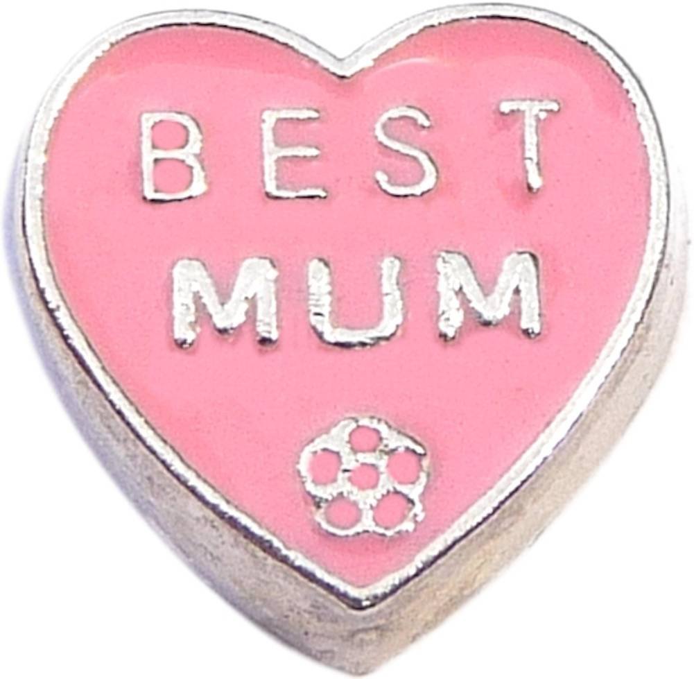 Best Mum Pink Heart Floating Locket Charm. Our floating locket charms fit in the NewCharms brand lockets as well as all other major brand floating lockets.