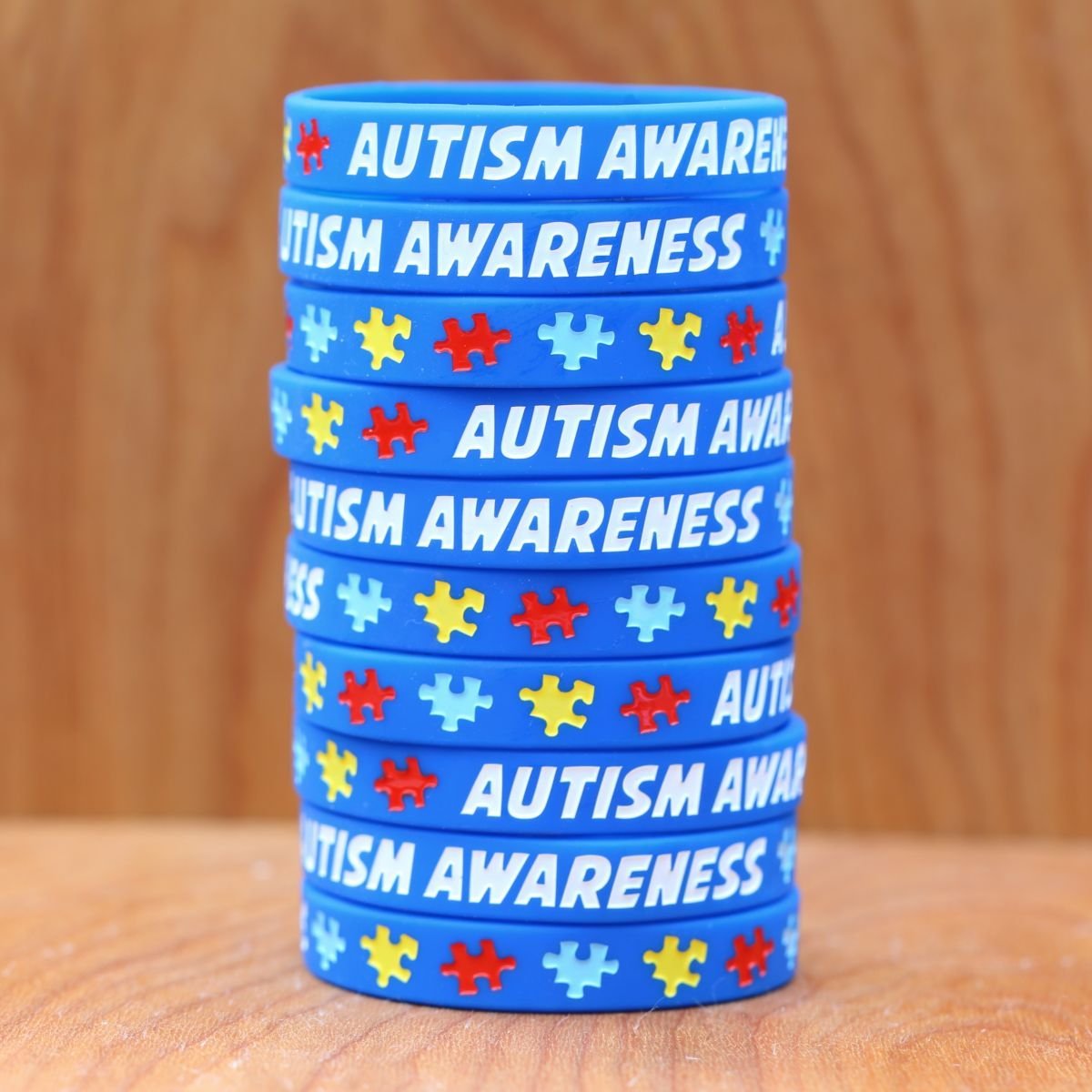 100 Autism Awareness Wristbands - Colorful Puzzle Piece Silicone Bracelets