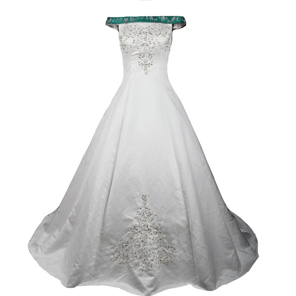 Kivary White and Turquoise Green Beaded A Line Off Shoulder Embroidery Wedding D