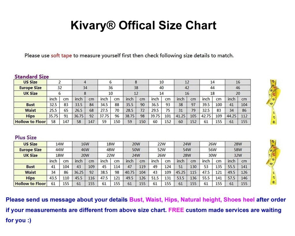 For custom made size, please message and contact us Bust, Waist, Hips, Height with shoes (= top head to floor + shoes heel )