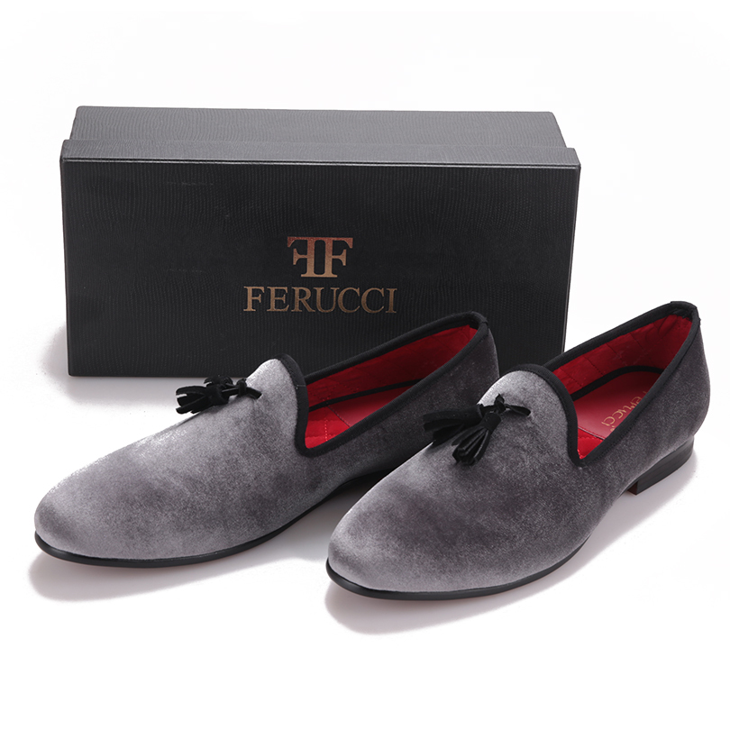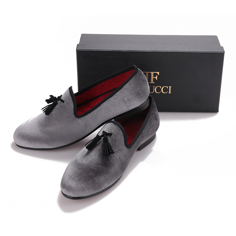 FERUCCI Gray custom-made Velvet Slippers loafers with Black tassel