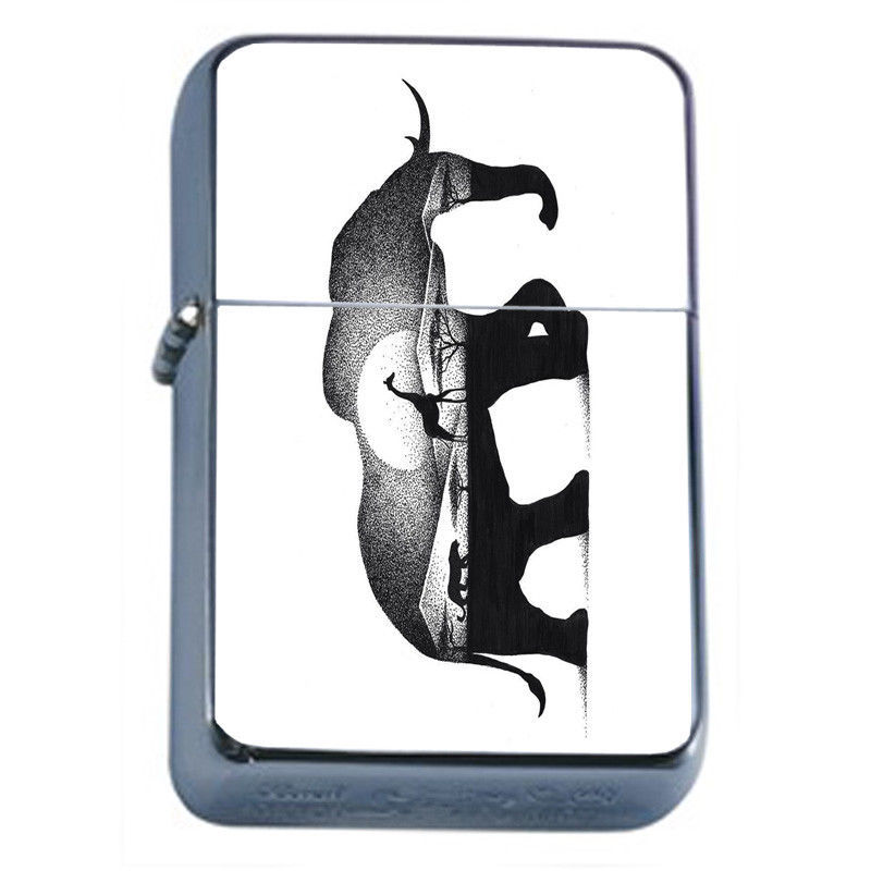 Elephant Art Black White Em1 Flip Top Oil Lighter Wind Resistant
