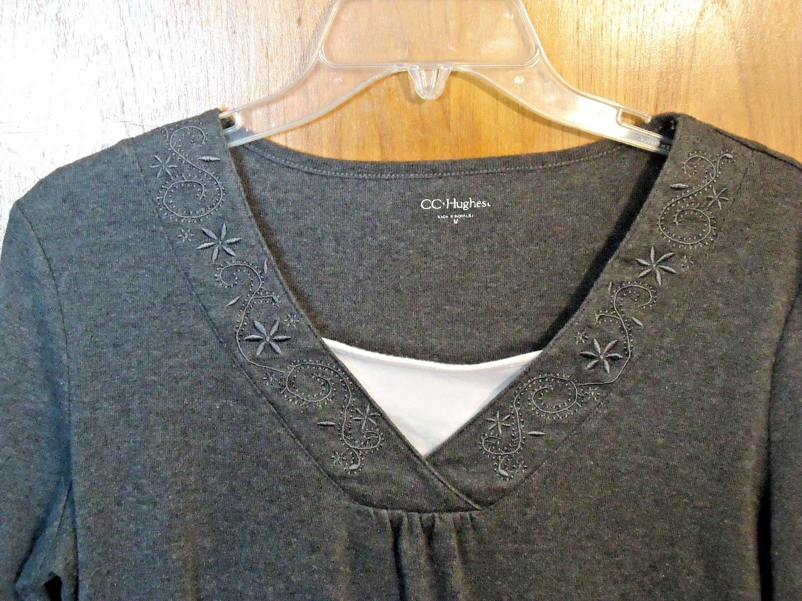Womens C C Hughes Size M Gray Long Sleeve Pull Over Top Design Around Neckline