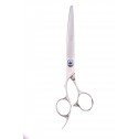 Ice tempered high carbon Japanese 440C stainless steel, 7.0? left handed cutting shear manufactured for maximum comfort and efficiency with off set ergonomic handle, black adjustable tension knob and fixed finger rest. Leather case included. FREE BARBER RAZOR WITH FULL BLADE