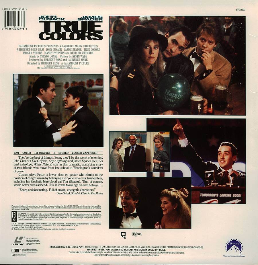 This is a previously viewed LASERDISC of the drama classic TRUE COLORS, staring,