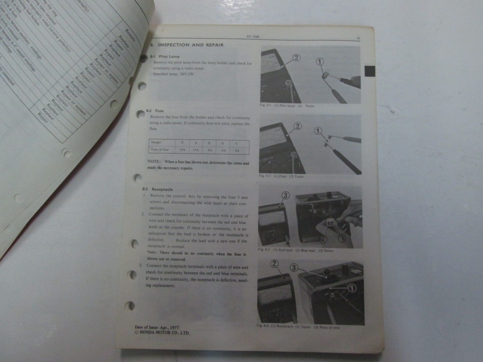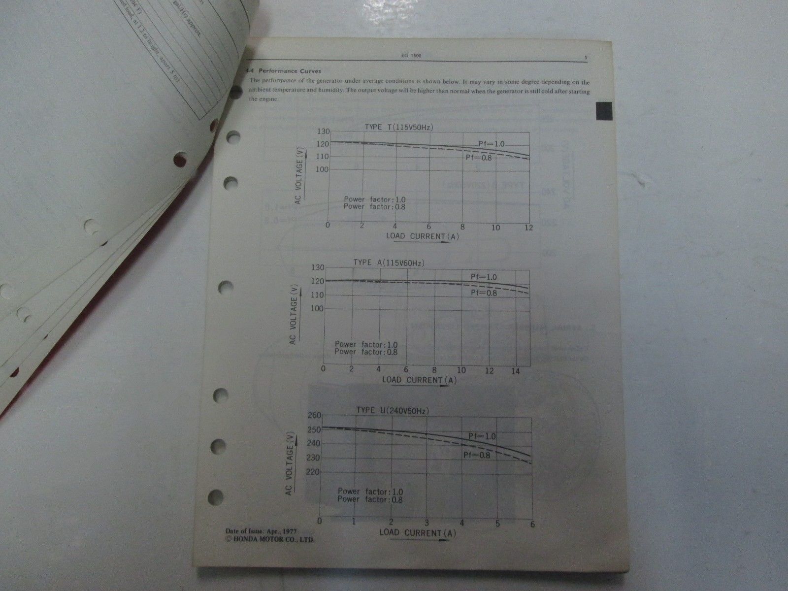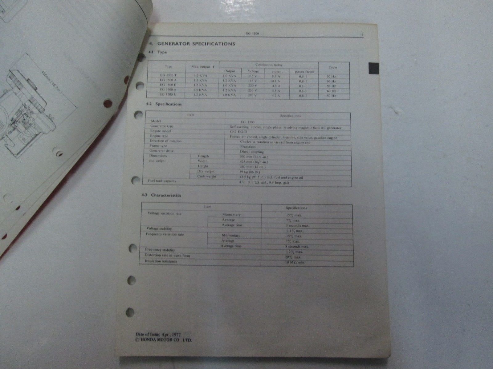 1978 Honda EG1500 EC1500 ED1000 Portable Generator Shop Manual LOOSE LEAF OEM***
