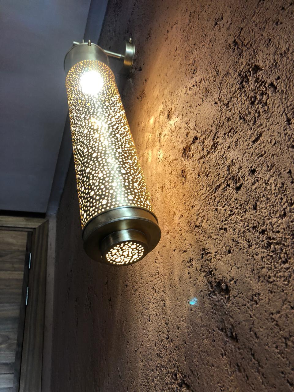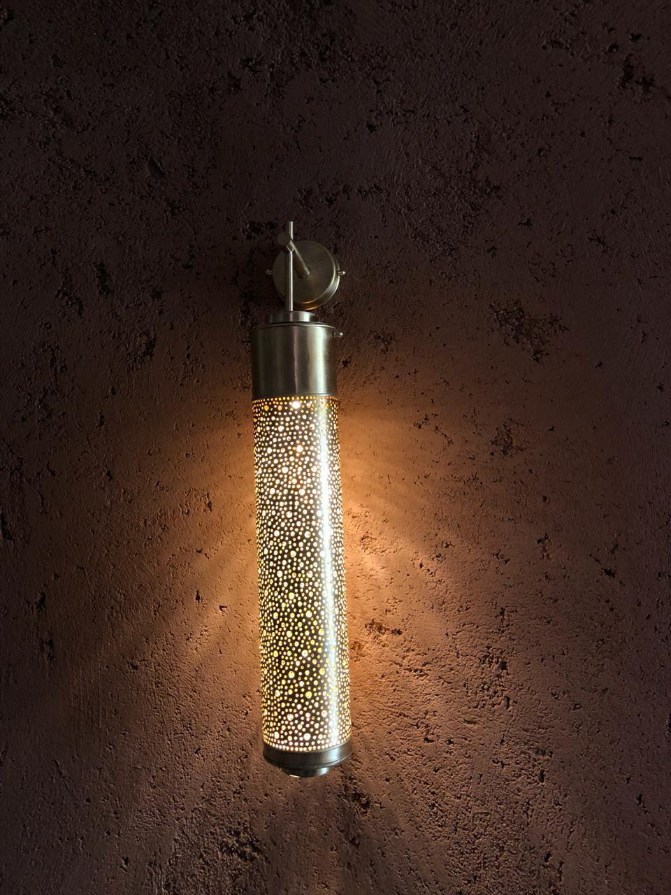 Our 2 Wall Lamp and Moroccan Antique Brass Plug-In Wall Lamp Set of 2 Wall New Decor Engraved Wall Torch Light Moroccan Brass Antique Torch Wall Light is a beautifully hand forged and carved antiqued brass torch with brass flame creating a spectacular light spectacle. The brass fretwork is hand sawn gives the body and support of the flame , upon which a crescendo of varying sized brases fills. In a natural setting the brass adds a charismatic allure whilst the brass flame gleam in natural light.