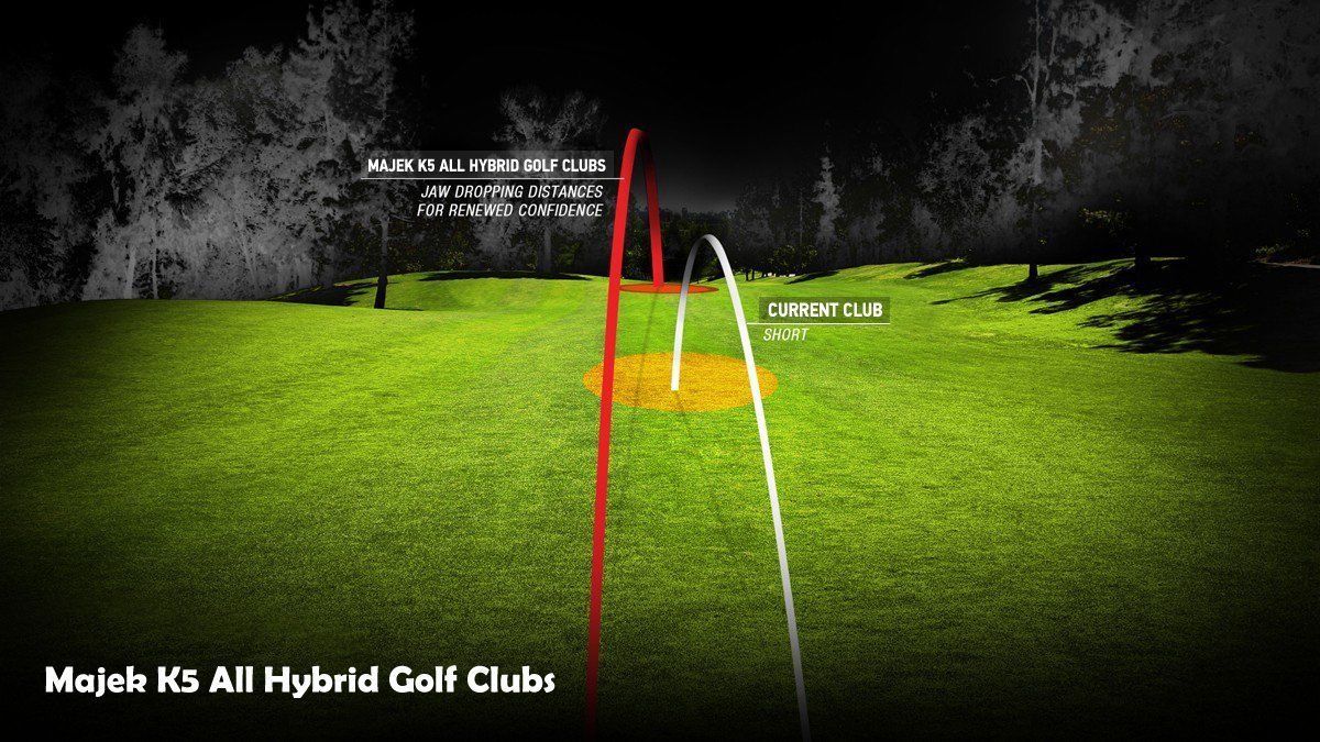 Replace Your Entire Difficult To Use Iron Set With The Majek K5 All Hybrid Iron Set Perfect For Big Tall Golfers Majekally Improve Your Hybrid-Iron Game With The Big Tall Extra Long Majek Hybrids!!! Pure Golf Engineering: Majek Hybrid was Co-Engineered by members of the UCLA's engineering department. This unique relationship and pure engineering approach created the Majek All Hybrid Iron Set. Benefits of the Majek Hybrid: -More Weight Positioned Behind The "Sweet Spot" -Deeper Cavity Back Creates A Tighter Shot Dispersion, Which Increases The Accuracy On Off Center Hits. -Aerodynamic Design Creates A Reduction In Drag, Which Leads To Higher Club Head Speeds -Wide To Thin Crown Design Creates A Lower CG To Promote Higher Launch Angle For More Distance -Lightweight Premium Graphite Shaft Promotes Faster Swing Speed For Greater Distance. -Black Crown And Arrow Markers Make Alignment Easy And Eliminates Glare. Support A Local Company: Your Custom Made Majek Golf Hybrid Is Assembled By Hand In Riverside, CA, USA And Delivered Direct To Your Door.