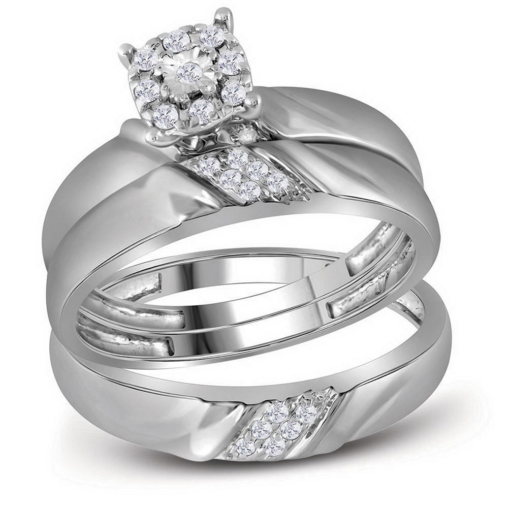 10kt White Gold His Hers Round Diamond Solitaire Matching Bridal Wedding Ring Band Set 1/5 Cttw