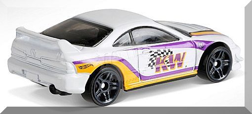 Description: White, w/Black interior, Smoke windows, Purple, Dark Yellow and Black stripe checkerboard graphics w/'KW' on sides and hood, Black ‘Hot Wheels’ logo rear quarters, Black Malaysia Base, w/DarkGrayPR5’s. 021319-021319P-D31