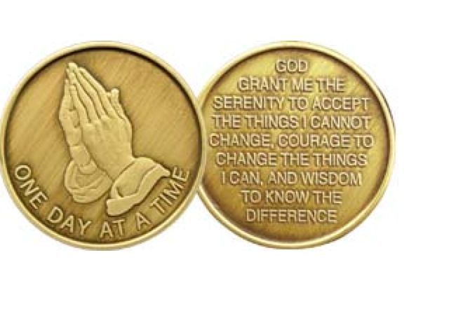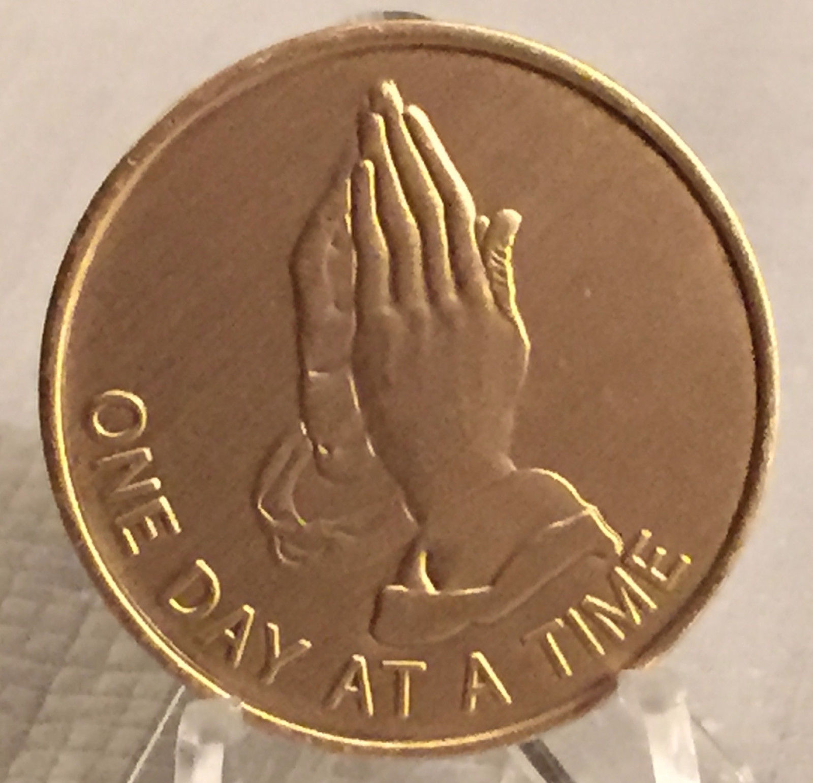 Bronze Praying Hands One Day At A Time Medallion Recovery Coin