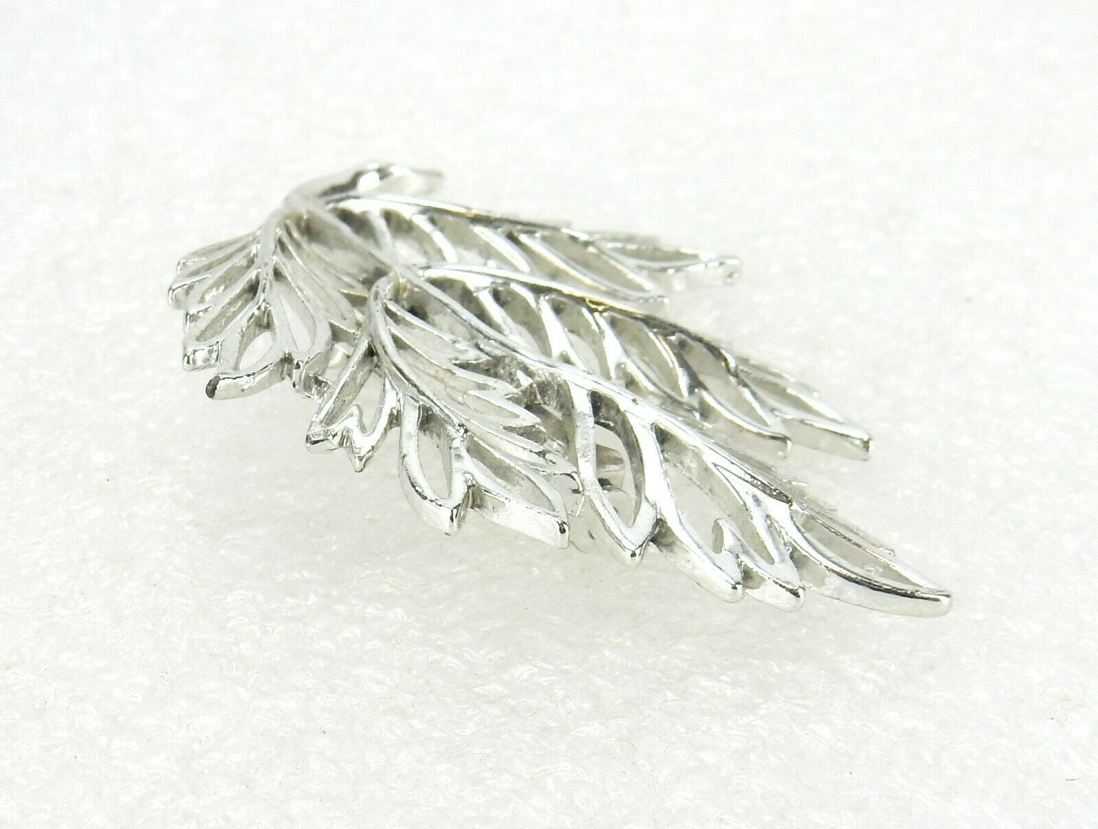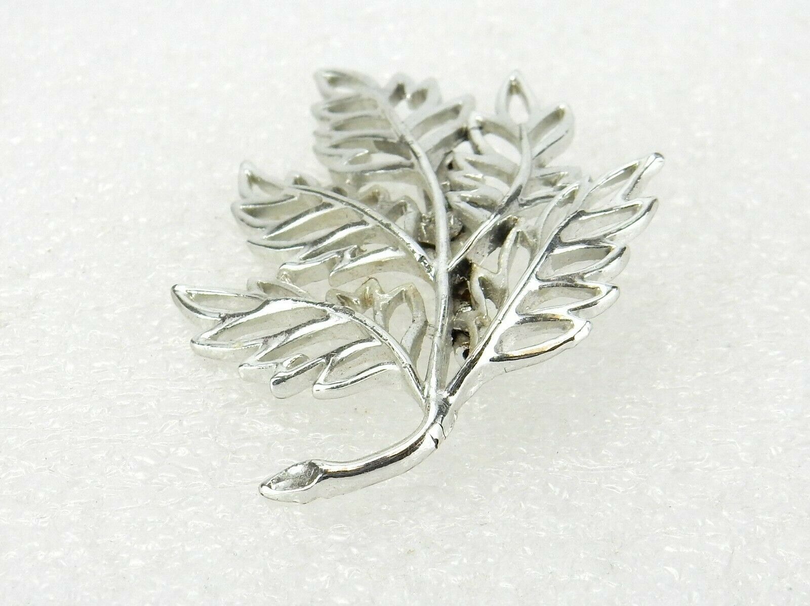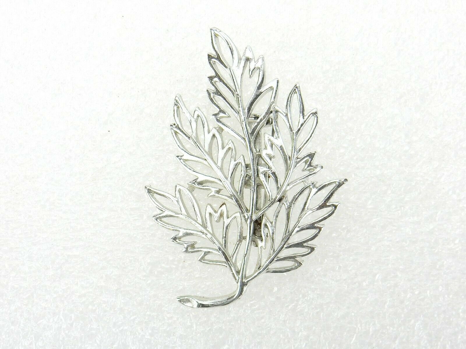 Vintage Costume Jewelry, Vintage Leaf Cut Out Brooch. Silver Tone. PIN77