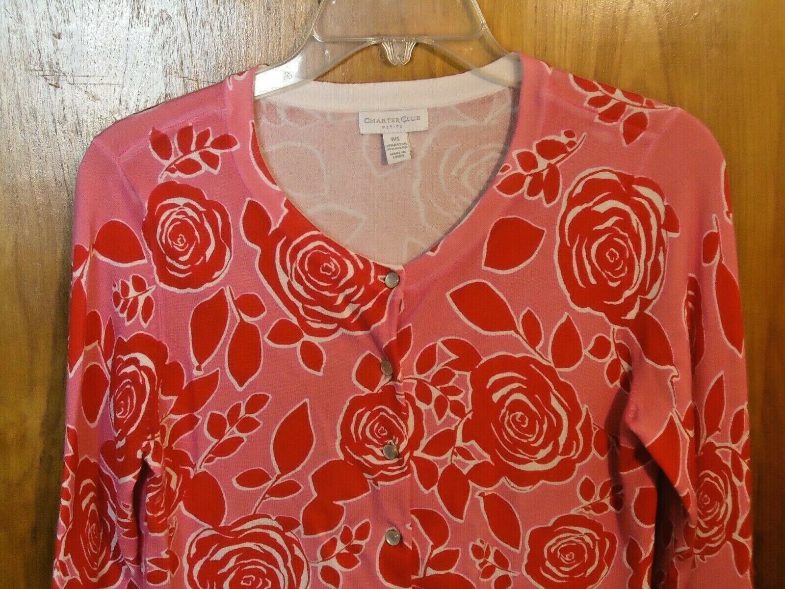 Here is a Womens Charter Club Petite Size P/S Button Down Long Sleeve Pink Red Floral Top " BEAUTIFUL TOP ".The pics do not do this item(s) justice.If you have any concerns or questions about this item(s) please ask before bidding / purchasing this item(s).Thank You.-(GR2)