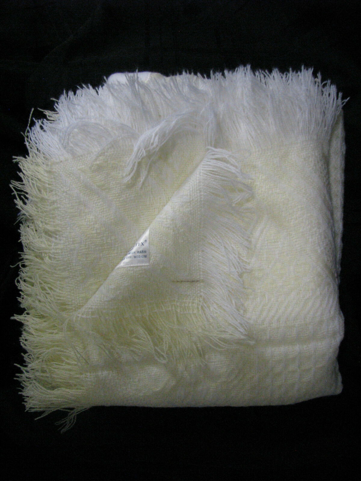 VINTAGE QUILTEX BABY BLANKET LIGHTWEIGHT FRINGE FRINGED YELLOW LAMB ACRYLIC