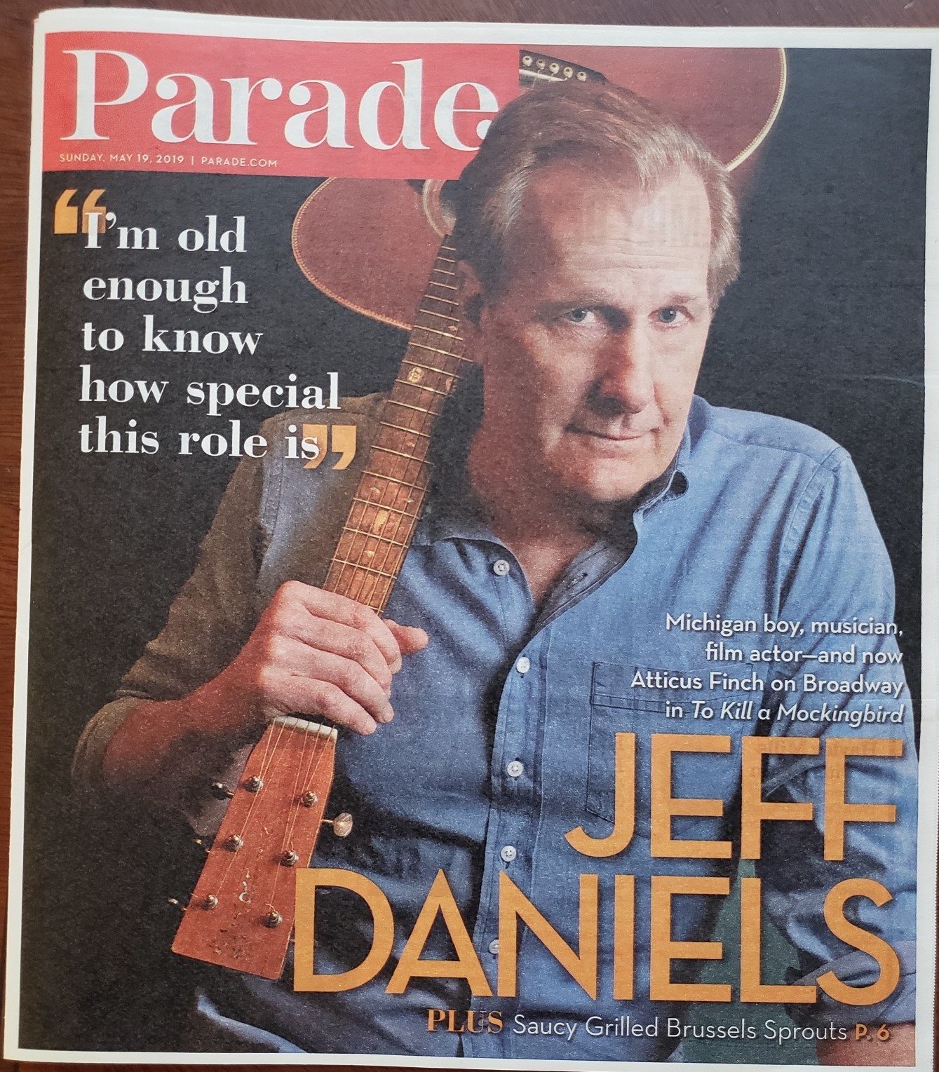 Featured in Parade Magazine May 19, 2019: Jeff Daniels on becoming Atticus Fich, making music, the tug of family and his home state - and the power of theater.