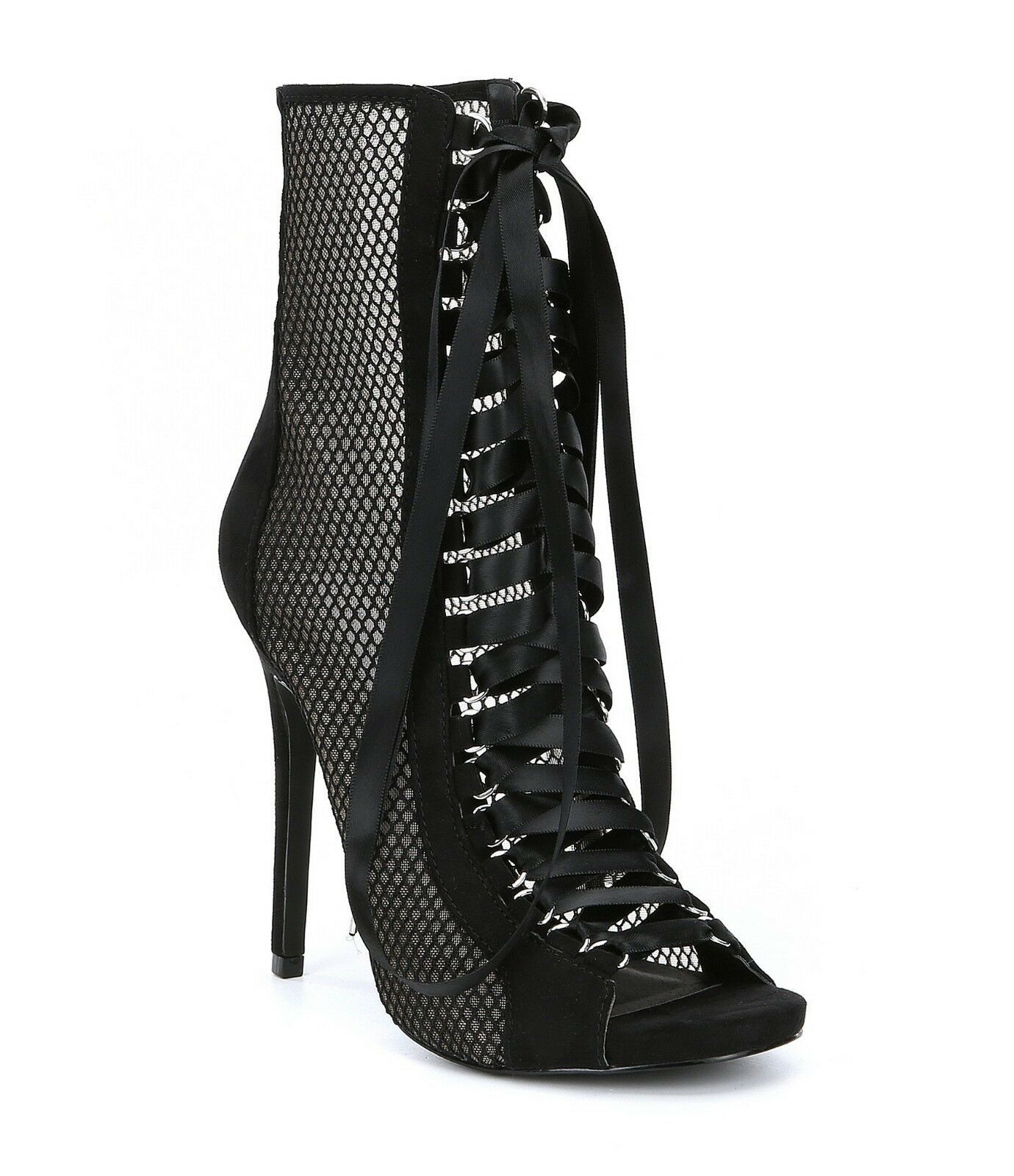Steve Madden Fuego Mesh Peep-Toe Booties, Multiple Sizes Black FUEG01S1 Fuego-M