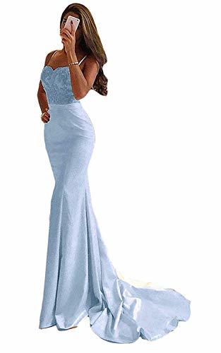 Plus Size Spaghetti Straps Long Beaded Mermaid Evening Prom Dresses Sky Blue 20W