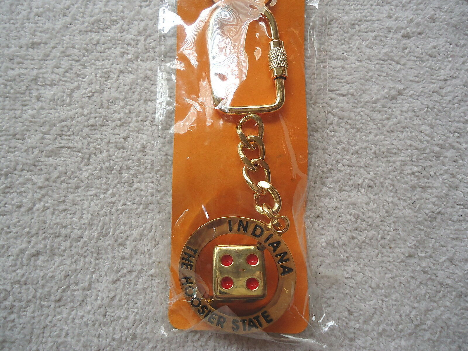 Here is a Indiana The Hoosier State Key Chain " Beautiful Collectable Key Chain " "NIP".The dice numbers have 2 colors in them black and red.It is very heavy made for its size.The pics do not do this item justice.If you have any concerns or questions about this item(s) please ask before bidding / purchasing this item(s).Thank You.-(A4)
