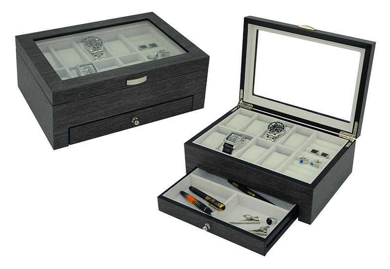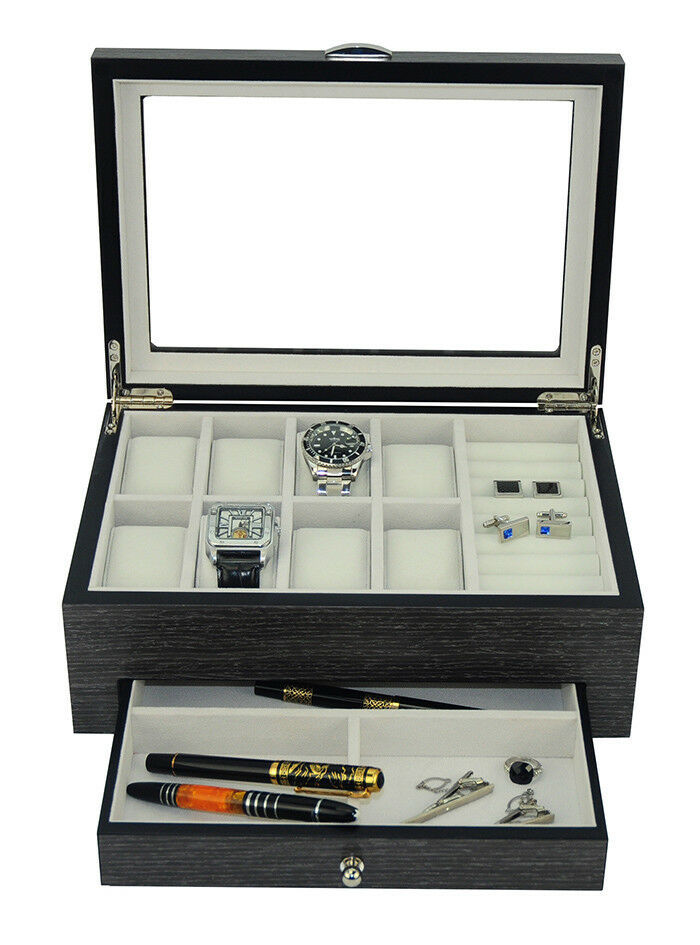 DecoreBay New Executive GINKO Wood Valet Storage Organizer Men's Jewelry Box