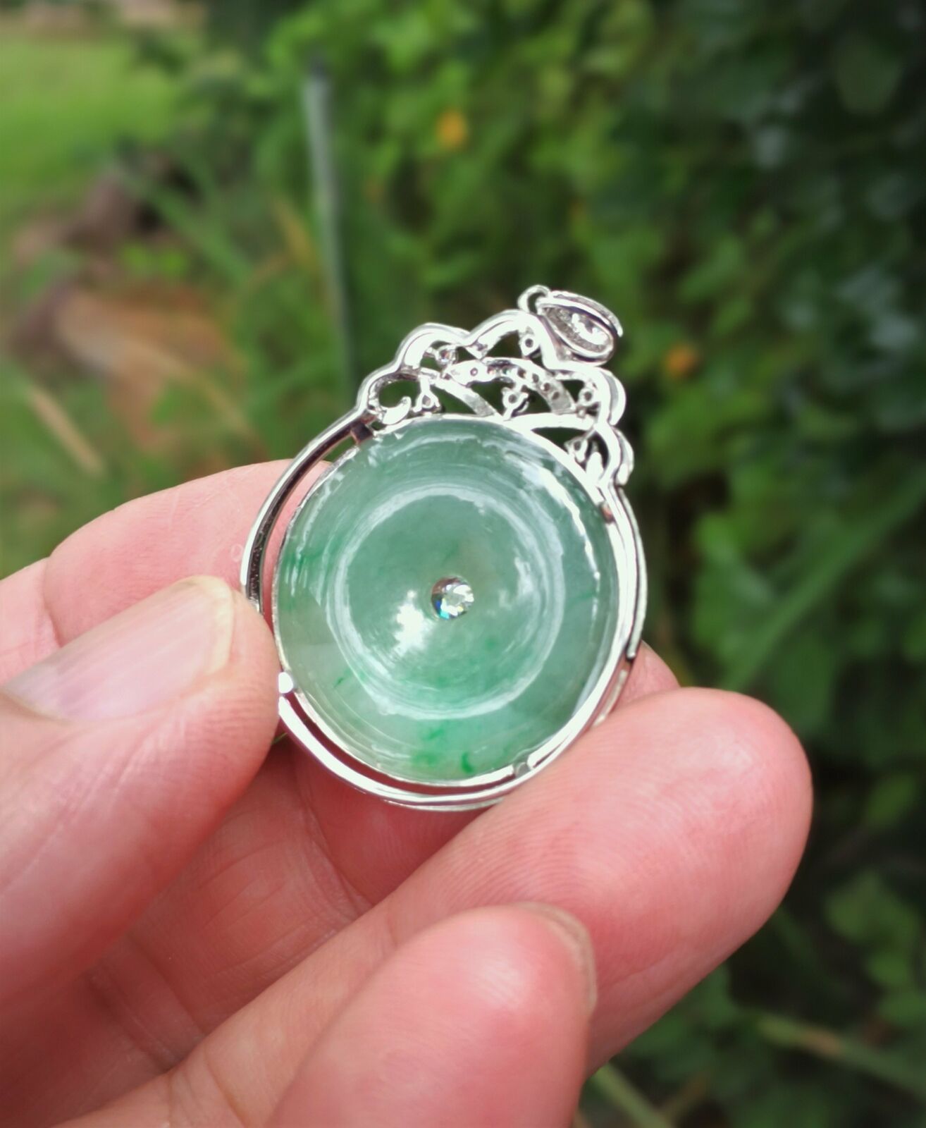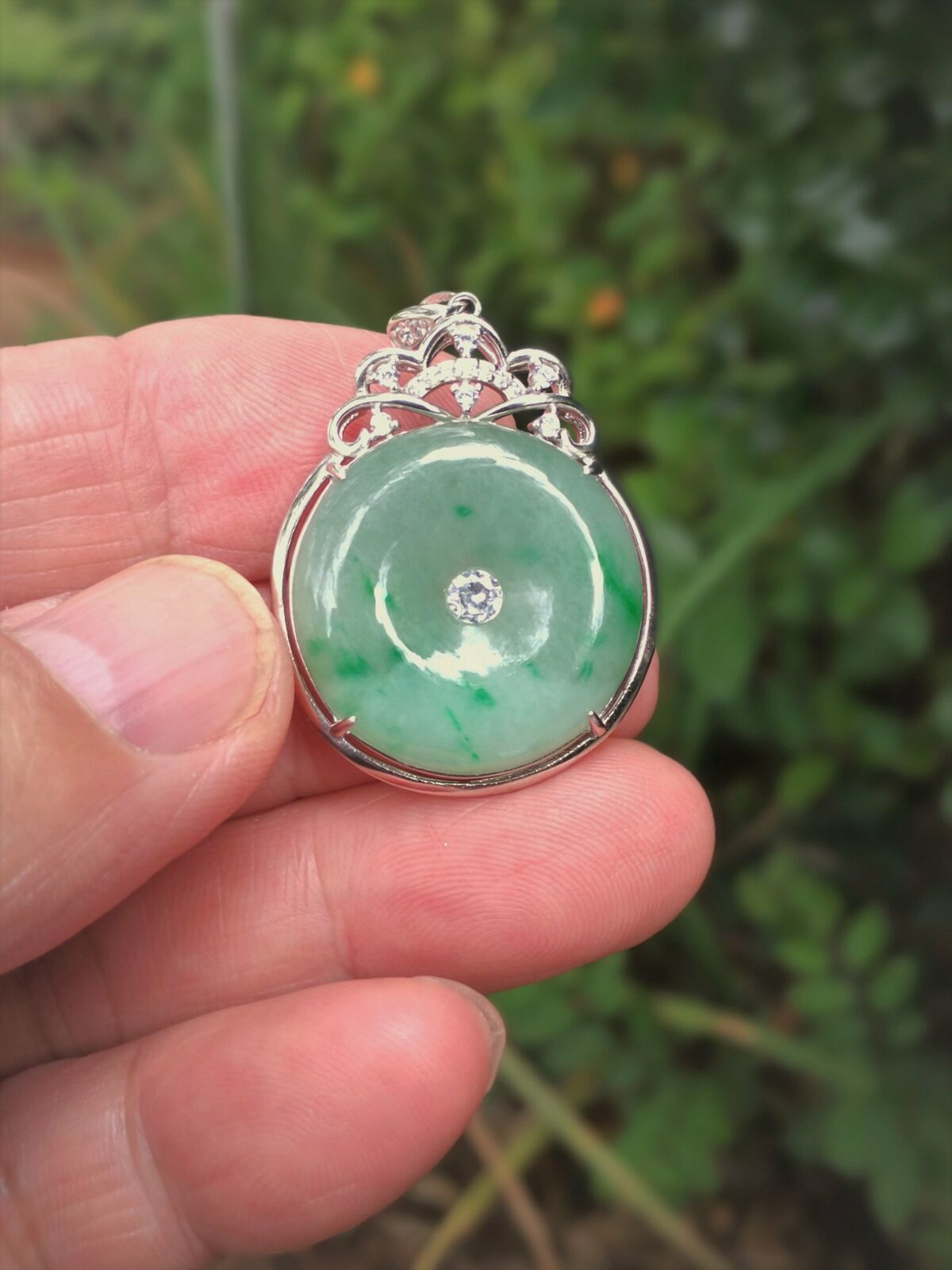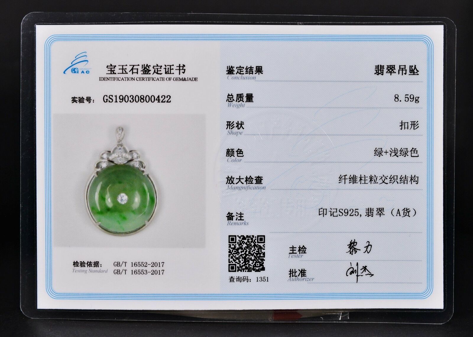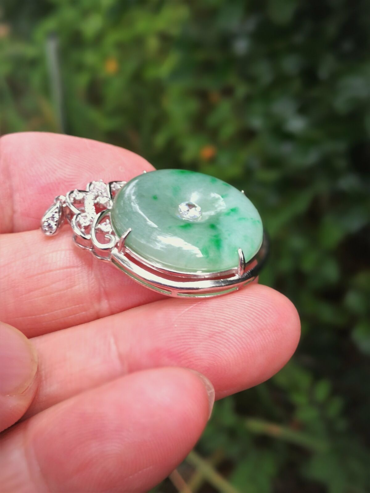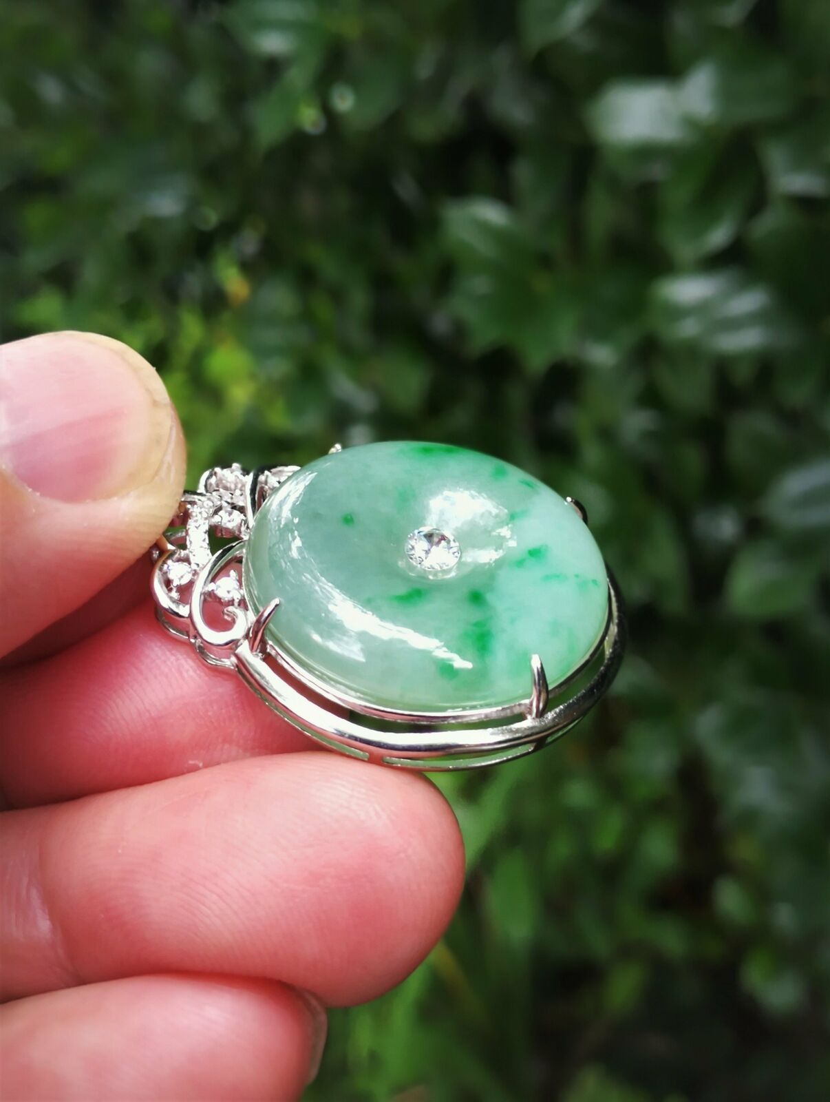 Certificated Natural Grade A Light Green Jadeite Jade Pendant US0422