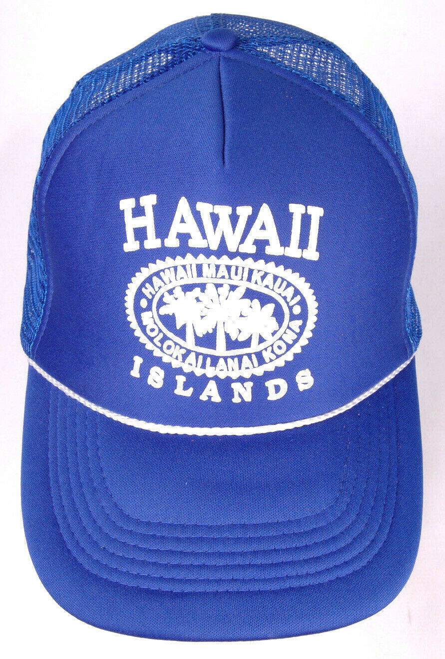 HAWAII ISLANDS Trucker Cap-Blue-Mesh-Rope Bill-Puff Letters-Snapback-Vtg-New