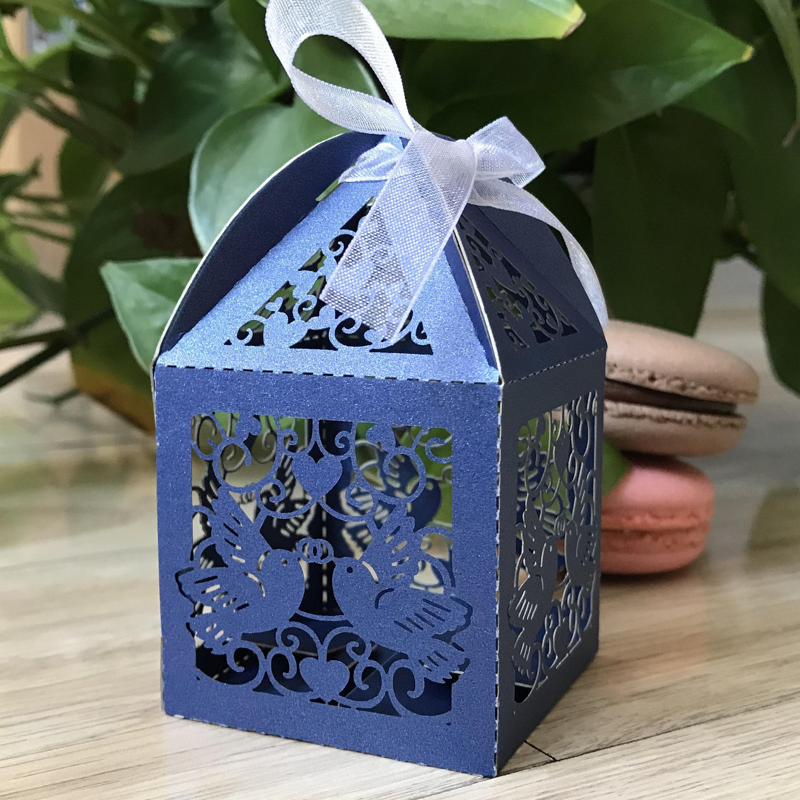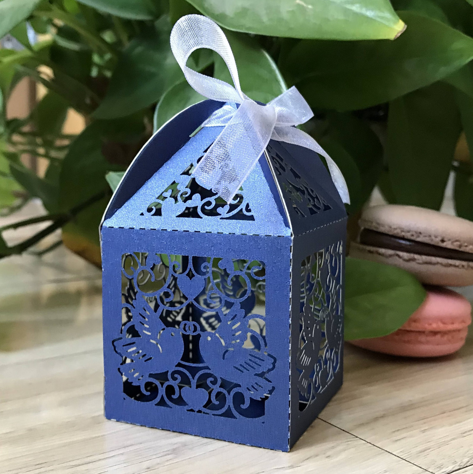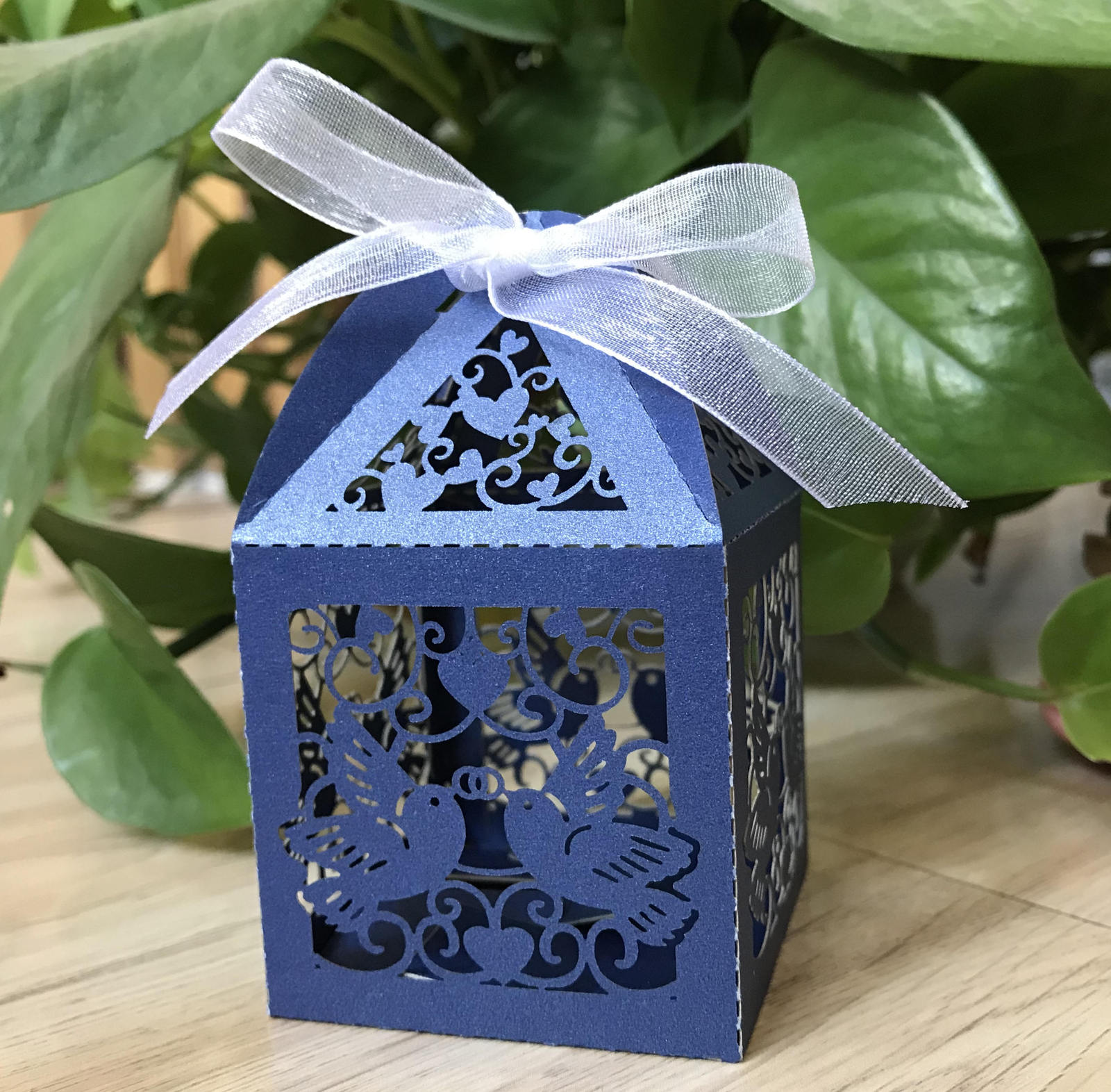 Pearl Paper Navy Blue Color Ribbon is white color;5*5*8.5cm,25pcs/opp bag;
