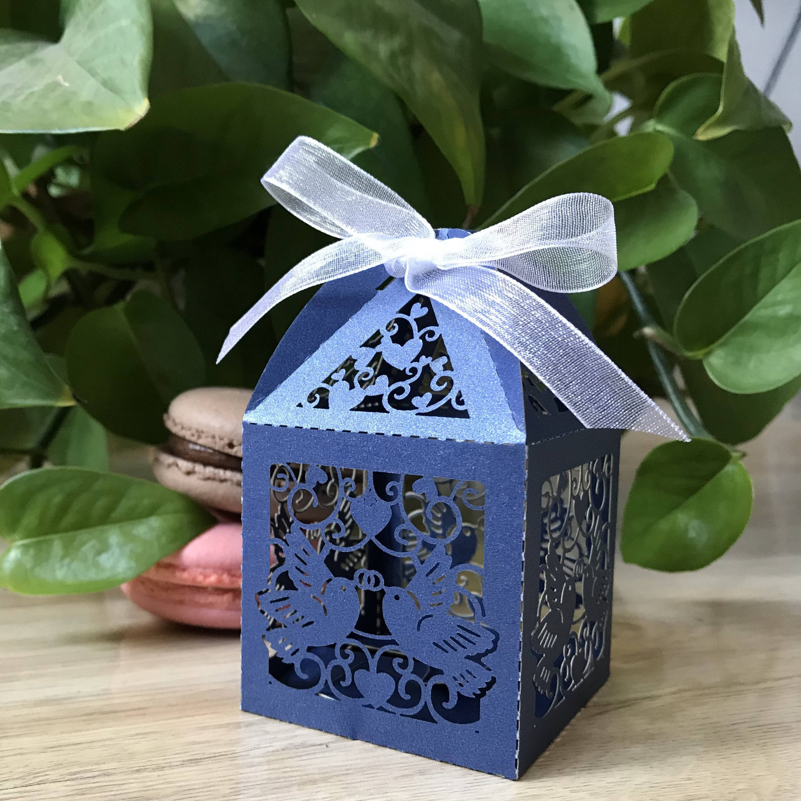 100pieces Navy Blue Laser Cut Wedding Gift Boxes with ribbon,Wedding Favor Boxes,Candy Gift Packaging Boxes,Chocolate Boxes,Table Decoration