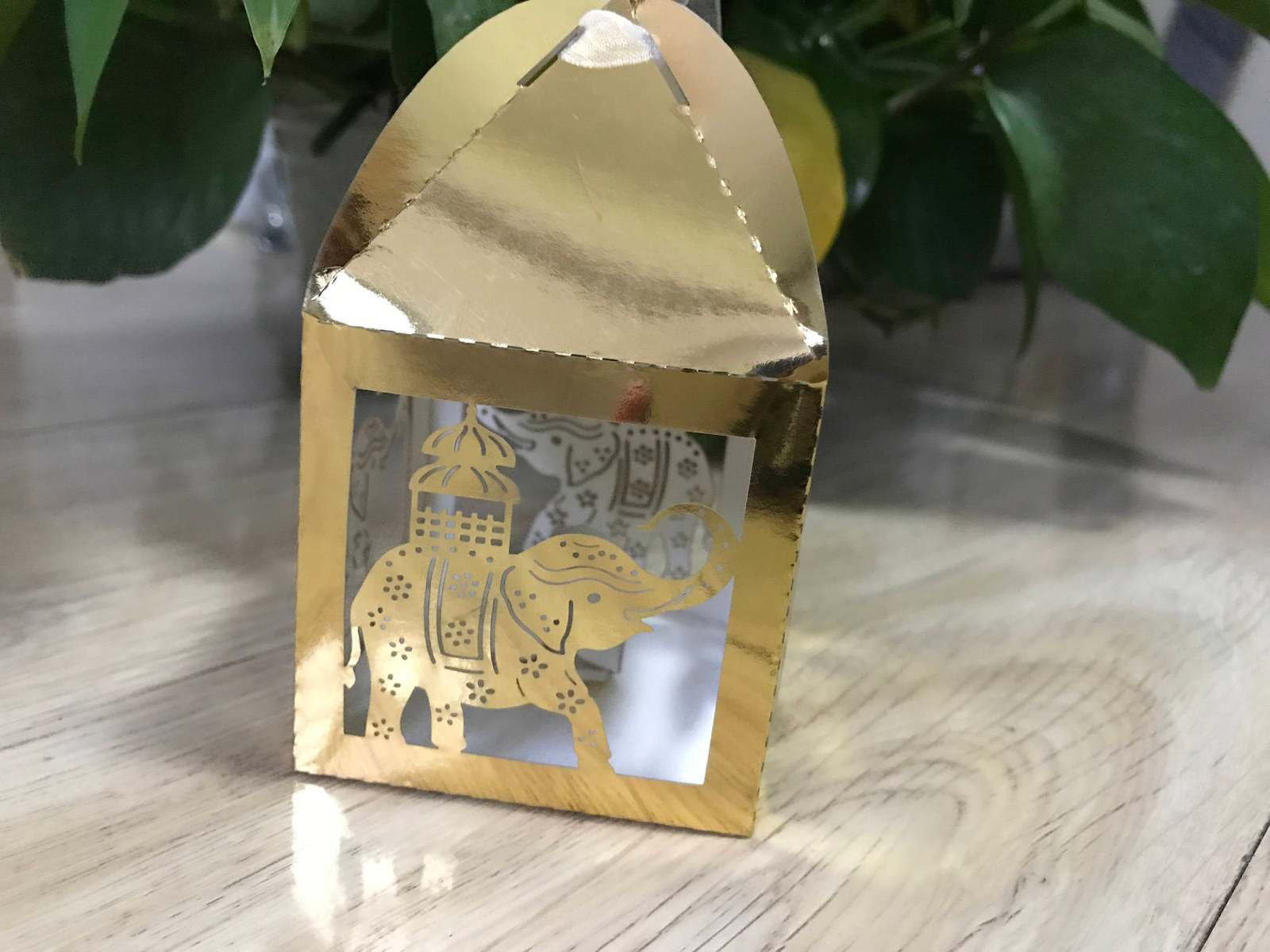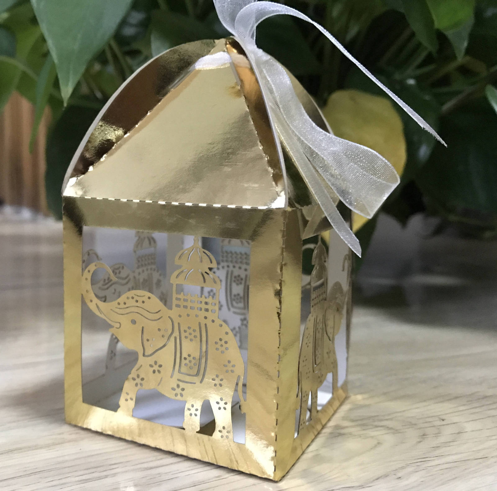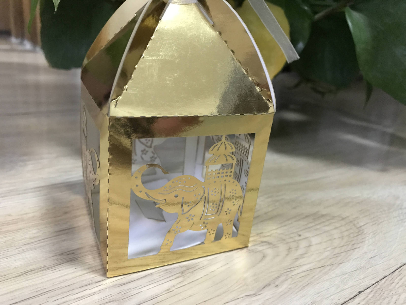 100pcs metallic gold elephant Gift boxes,6*6*9.5cm Laser Cut Wedding Favor Boxes